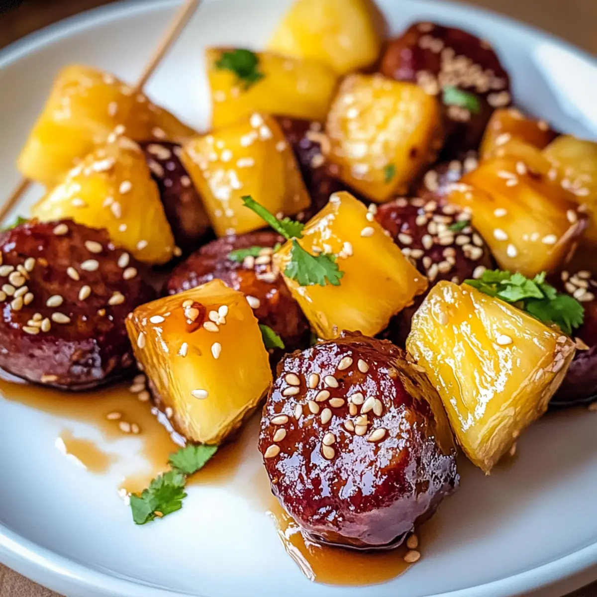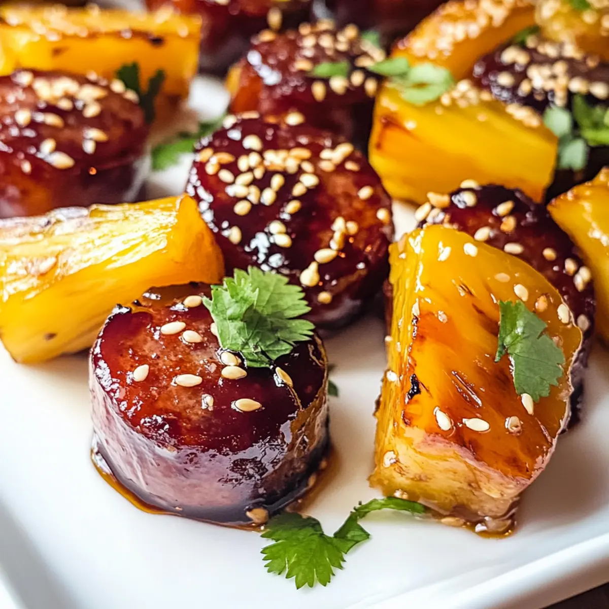 Perfekte Kombination: Die harmonische Verbindung von süßer Ananas und herzhafter Wurst sorgt für ein Geschmackserlebnis, das sich ideal für jede Feier eignet.
