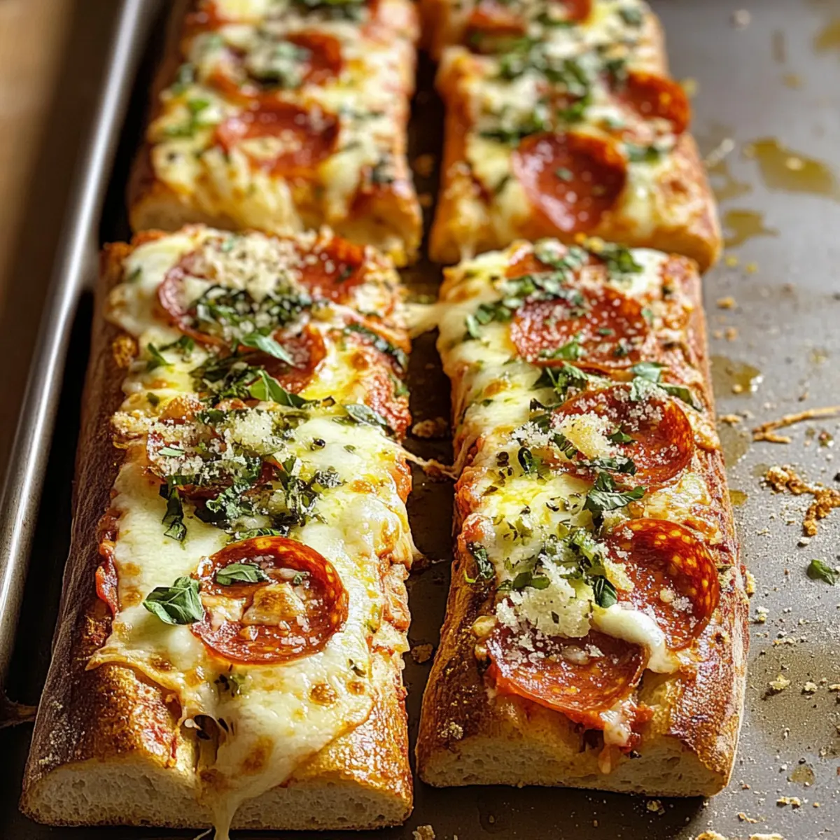 Crowd-Pleaser: Diese Baguette Pizzas sorgen für begeisterte Gesichter und zufriedene Gäste, egal ob beim gemütlichen Abendessen oder beim geselligen Beisammensein.