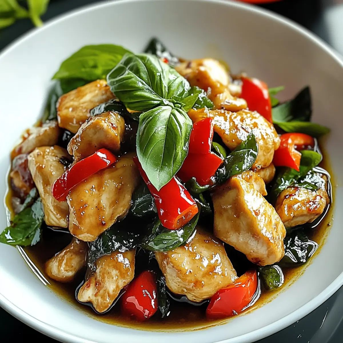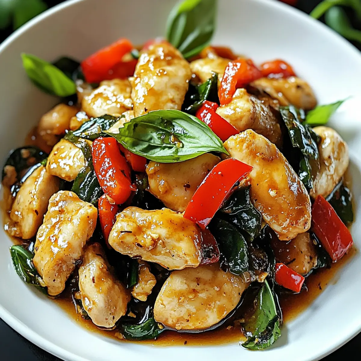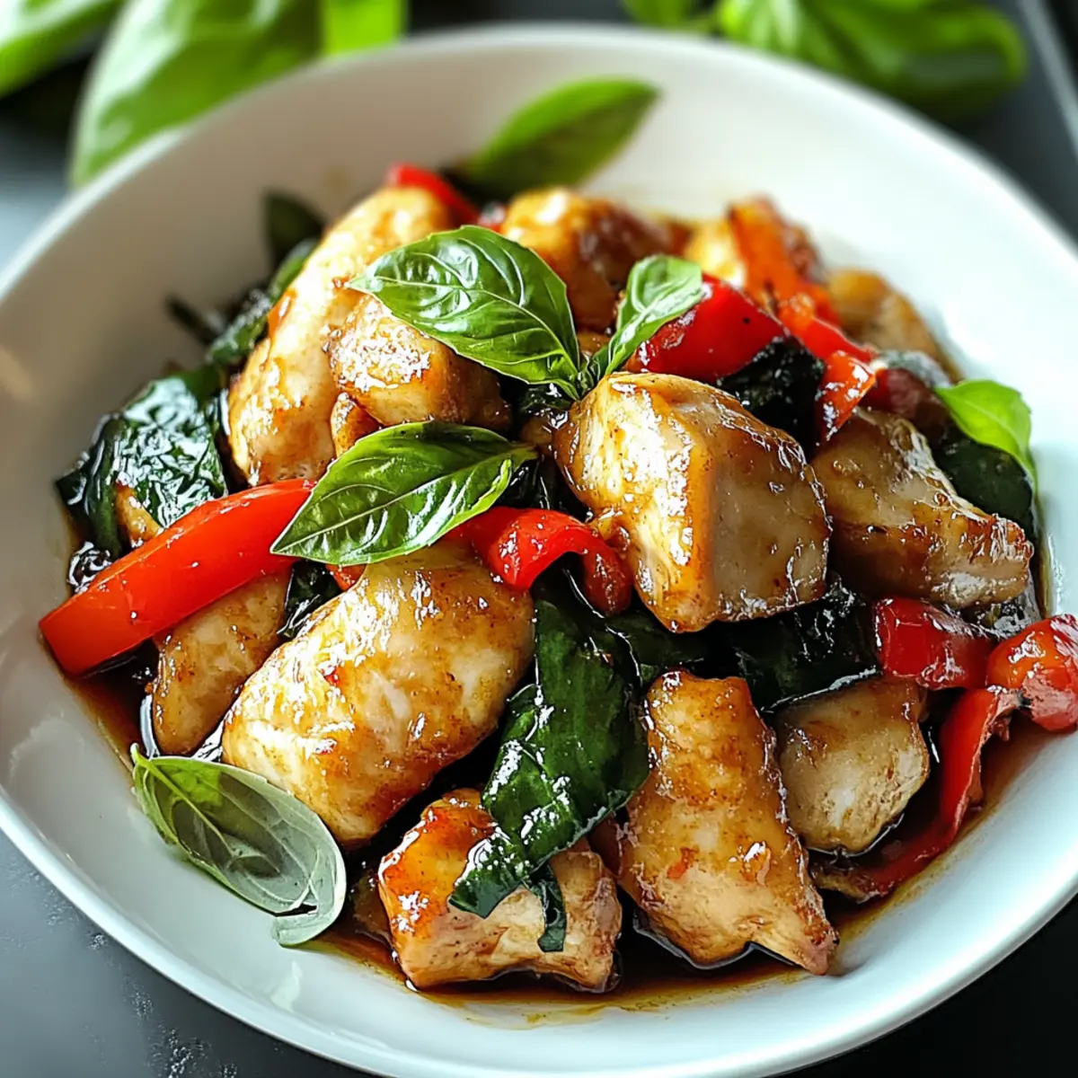 Ein verlockender Duft von frischem Basilikum und würzigem Knoblauch schwebt durch meine Küche, während ich mich an die Zubereitung von Basilikuhuhn mache. Dieses einfache Thai-Kochrezept, bekannt als Pad Krapow Gai, bringt in nur 30 Minuten einen Hauch von Thailand auf den Tisch. Mit zarten Hähnchenschenkeln, knackigen Paprika und dem unverwechselbaren Aroma von Thai-Basilikum bietet dieses Gericht nicht nur eine Geschmacksexplosion, sondern ist auch ein idealer Begleiter für geschäftige Wochentage. Mit ungefähr 400 Kalorien pro Portion bleibt es leicht und nährend, ganz ohne aufwendige Vorbereitungen. Ist es nicht schön, in kürzester Zeit ein köstliches und sättigendes Abendessen zu genießen? Lass uns gemeinsam diesen kulinarischen Genuss entdecken!