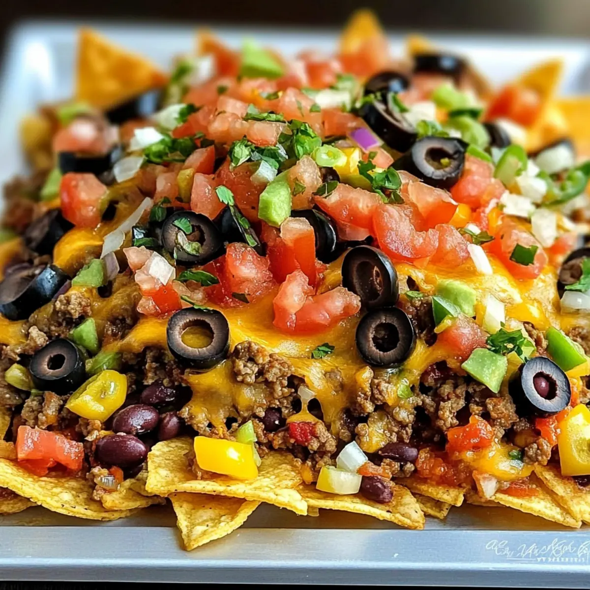 Machen Sie sich bereit, Ihre Gäste mit diesen köstlichen beladenen Nachos zu überraschen – ein Genuss für jeden Anlass!