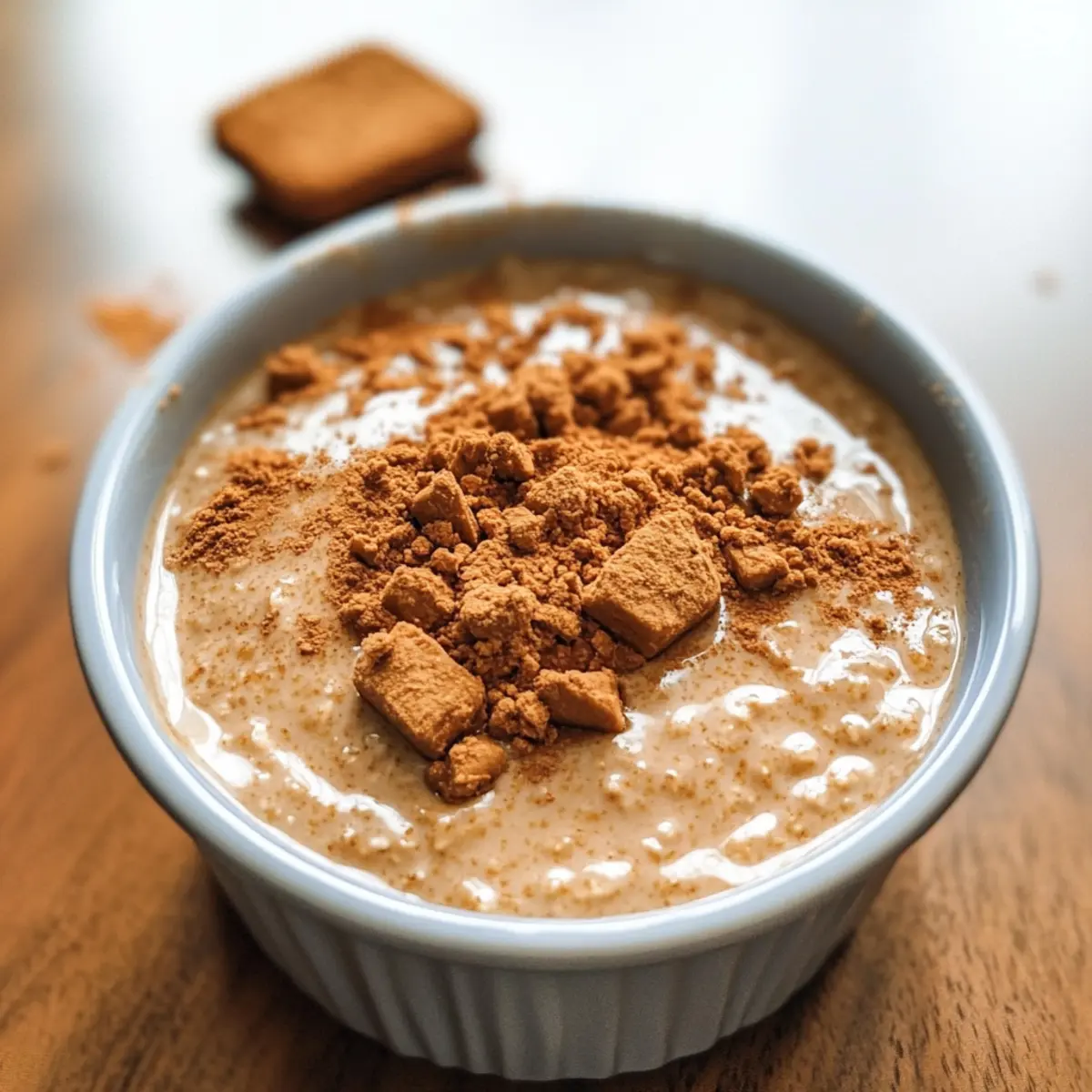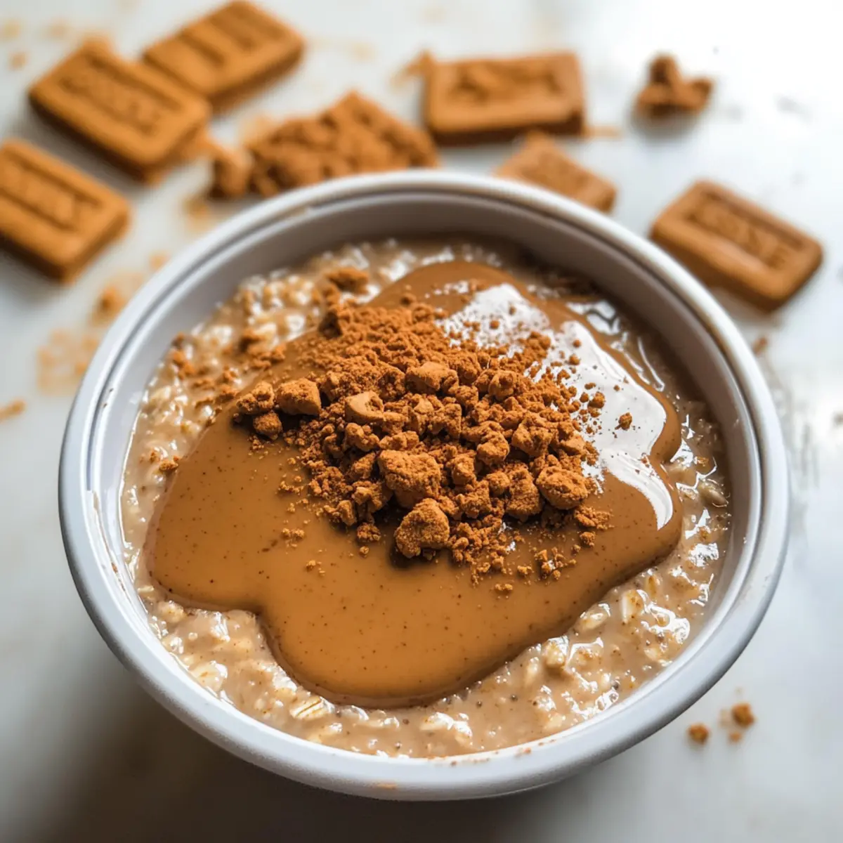 - Jetzt sind deine Biscoff Übernachtung Haferflocken bereit zum Servieren!