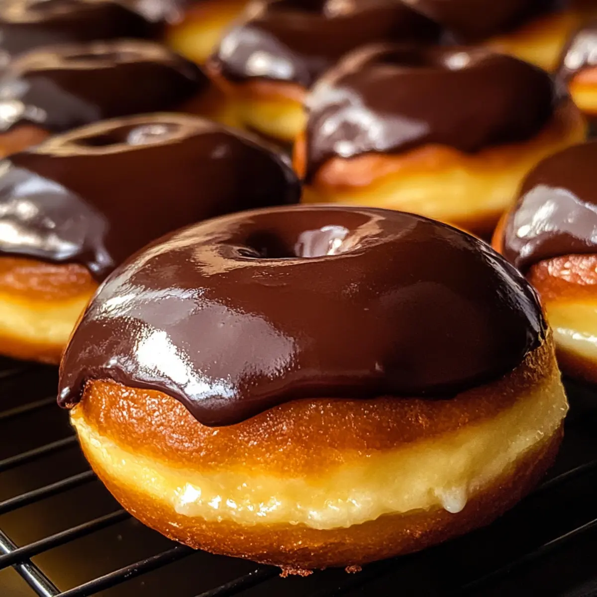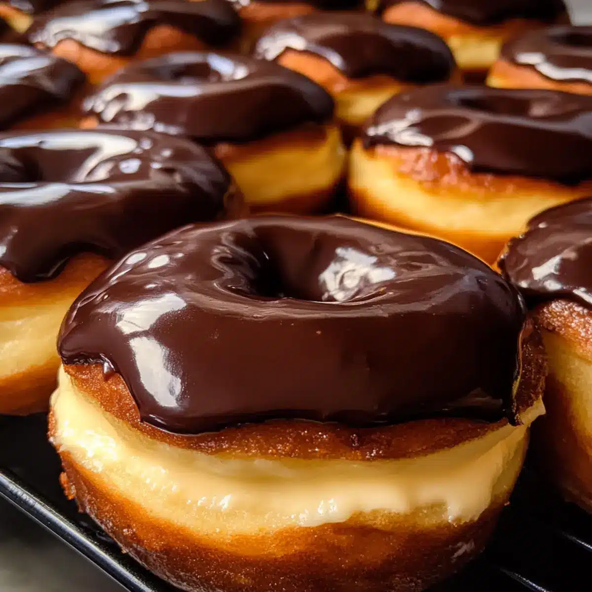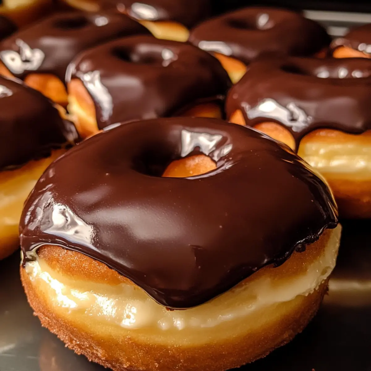 Die Kombination aus süßer Patisserie-Creme und schokoladiger Glasur macht diese Donuts zu einem unvergesslichen Dessert, das ideal für besondere Anlässe ist.