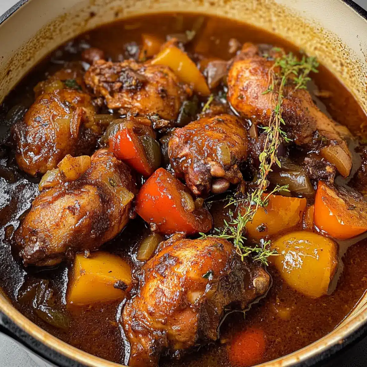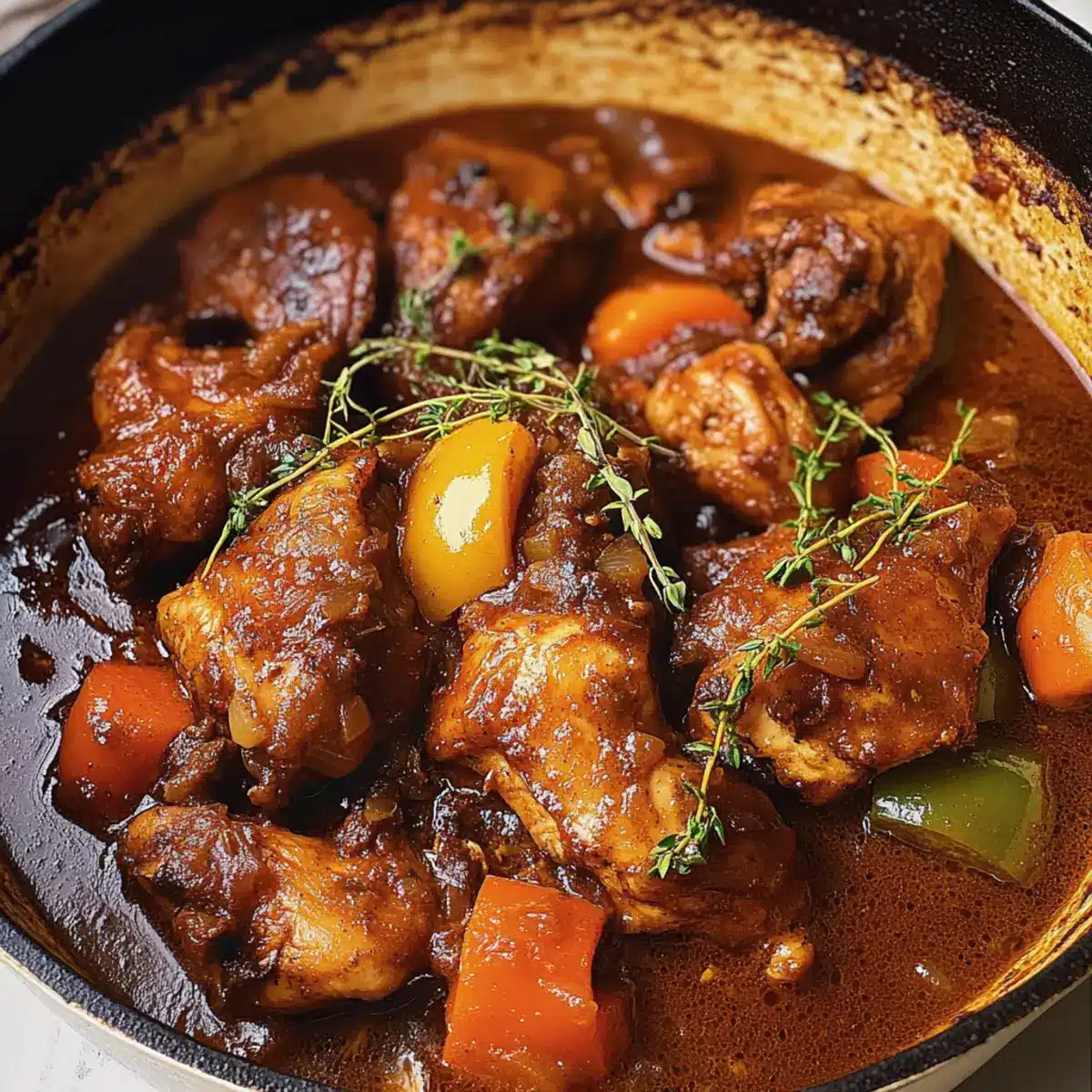 Als ich das erste Mal in die lebhaften Straßen Jamaikas eintauchte, wurde ich sofort von den verlockenden Aromen der Küche in den Bann gezogen. Diese authentische Zubereitung von Brauner Schmorhühnchen bringt den Geist der Karibik direkt zu Ihnen nach Hause. Mit zartem, schmorendem Hähnchen in einer reichhaltigen, aromatischen Sauce ist dieses Gericht nicht nur eine Augenweide, sondern auch eine Wohlfühl-Mahlzeit für die ganze Familie. Die Kombination aus Gewürzen und frischen Zutaten sorgt für ein Geschmackserlebnis, das Sie und Ihre Lieben ab dem ersten Bissen in Urlaubsstimmung versetzen wird. Besonders glücklich macht die unkomplizierte Zubereitung, die Ihnen wertvolle Zeit beim Kochen spart und gleichzeitig das Herz der preisgekrönten jamaikanischen Küche einfängt. Neugierig, wie Sie dieses köstliche Gericht selbst zubereiten können? Lassen Sie uns gemeinsam eintauchen!