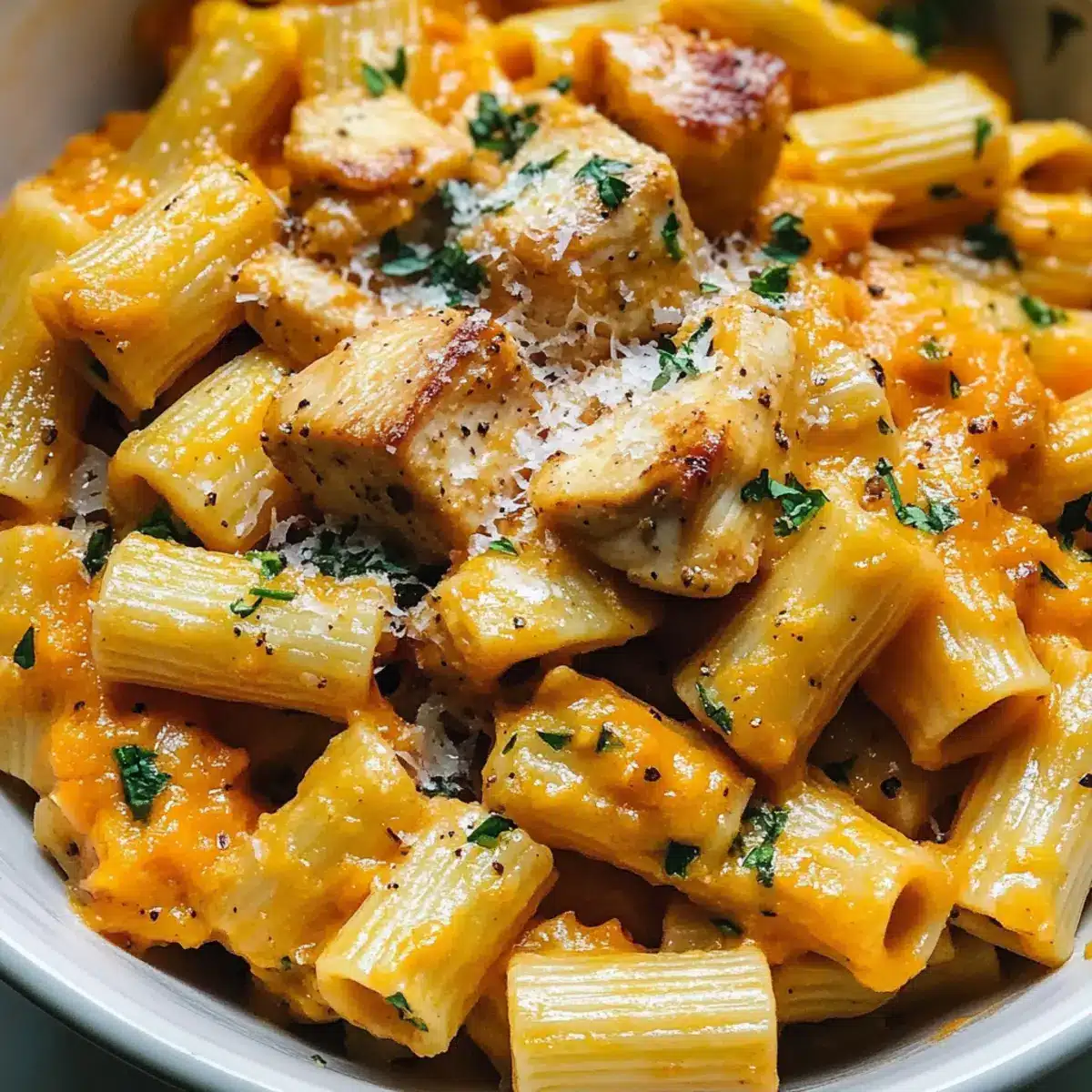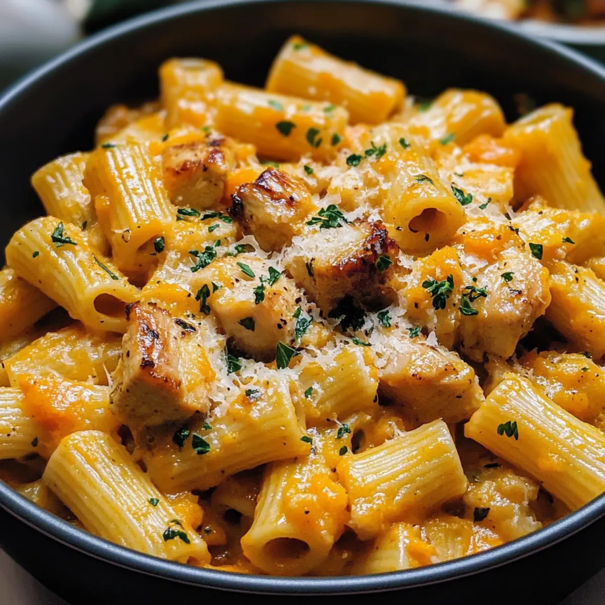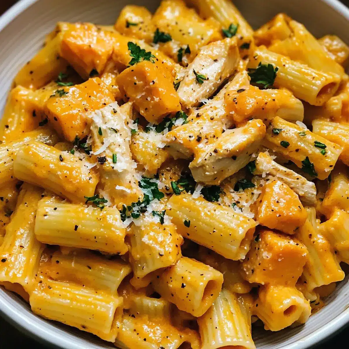 Diese Butternut-Kürbis-Pasta verbindet die perfekten Aromen des herbstlichen Kürbisses mit zartem Hühnchen und ist die ideale Wahl für dein gemütliches Dinner!