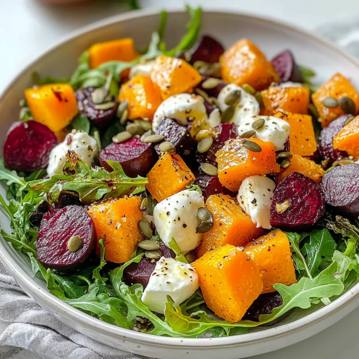 Die kühle Luft des Herbstes bringt nicht nur bunte Blätter, sondern auch köstliche Aromen in unsere Küche. Ich habe eine ganz besondere Liebe zu Salaten, die sowohl nährend als auch geschmacklich bereichernd sind. Mein Roasted Butternut und Rote Bete Salat mit Ahorn-Vinaigrette kombiniert zarte, geröstete Gemüsestücke, die mit einer cremigen Mozzarella bestückt sind. Diese vegetarische Delikatesse ist nicht nur ein Fest für die Sinne, sondern auch eine gesunde Wahl – perfekt für ein leichtes Mittagessen oder als farbenfrohe Beilage zu einem herbstlichen Abendessen. Mit minimalem Zeitaufwand bringst du ein nährstoffreiches Gericht auf den Tisch, das das Herz und den Magen erfreut. Willst du wissen, wie du dieses feine Rezept zubereitest? Lass uns gemeinsam in die Zubereitung eintauchen!