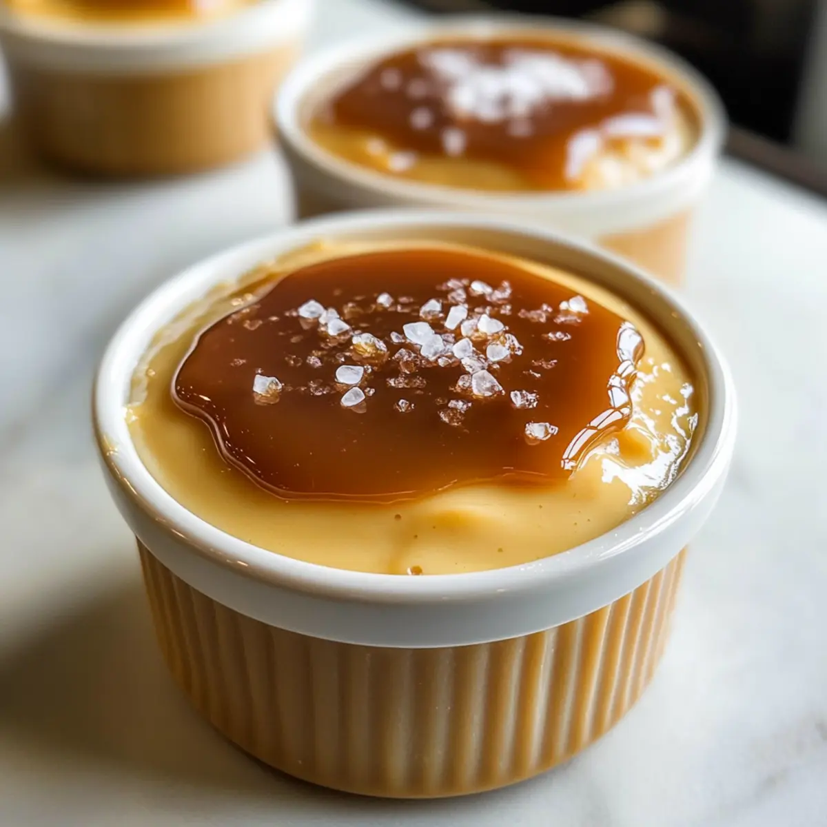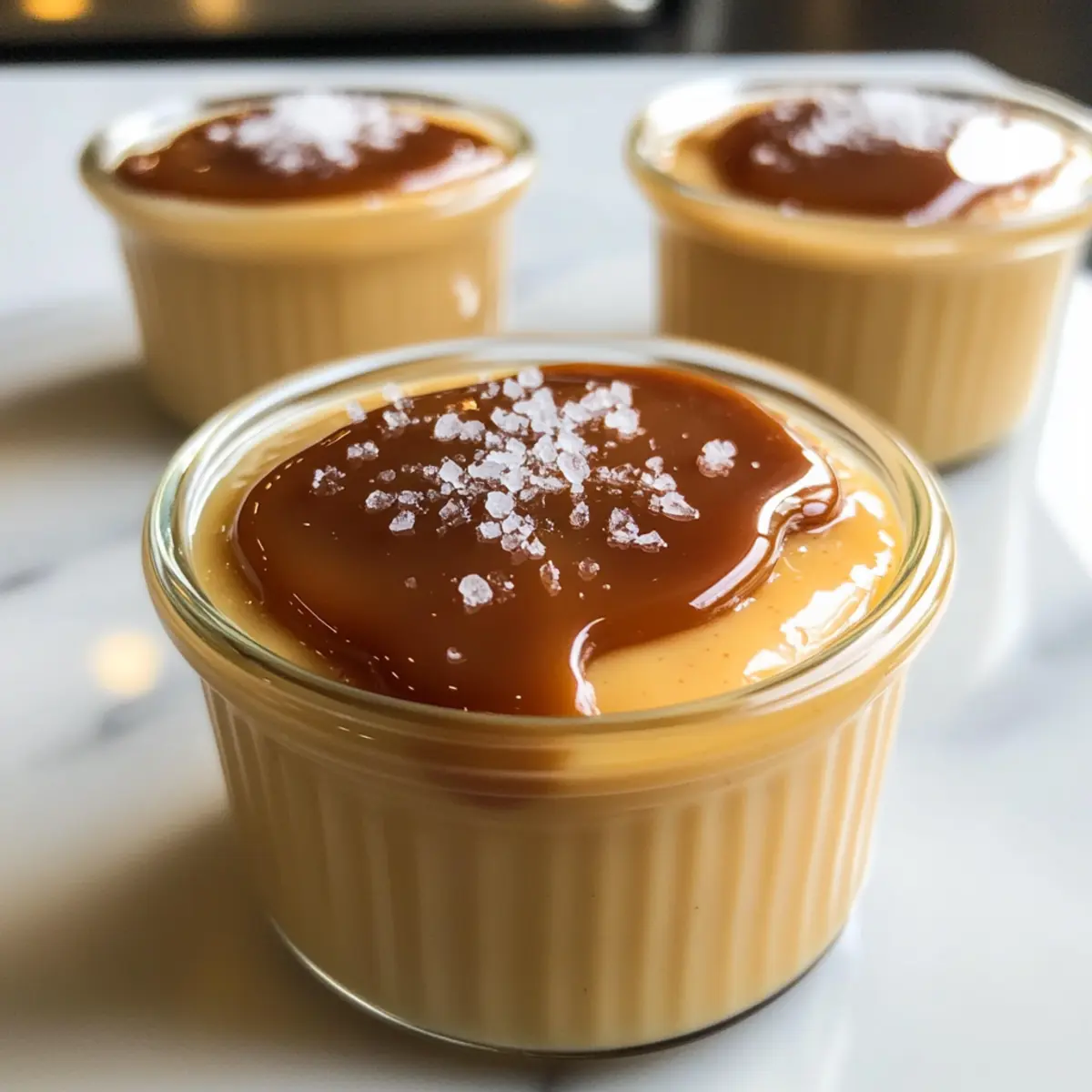 - Grobes Meersalz – für einen spannenden Kontrast zu der Süße des Puddings; streue es großzügig über den Karamell.