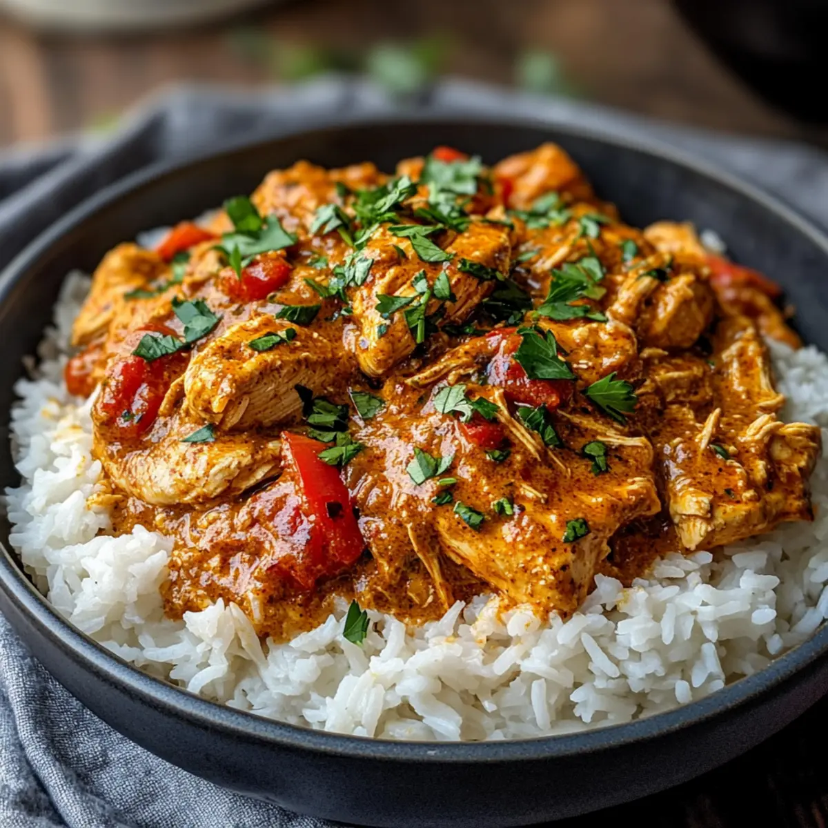 - Jasminreis: Die zarten, duftenden Körner sind ideal, um die reichhaltige Sauce aufzusaugen und harmonieren perfekt mit dem pikanten Hähnchen.