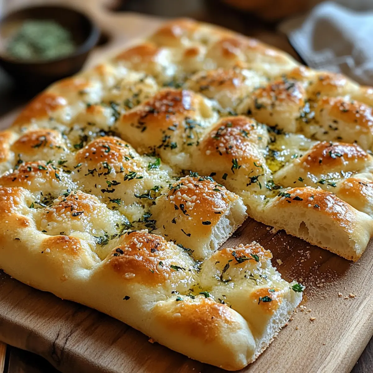 Focaccia-Brot mit Knoblauch und Parmesan lecker selbstgemacht