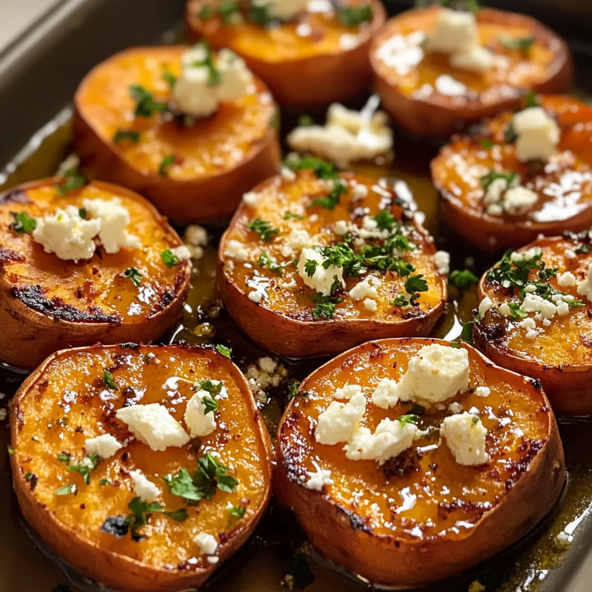 Geröstete Süßkartoffel mit Feta und Honig