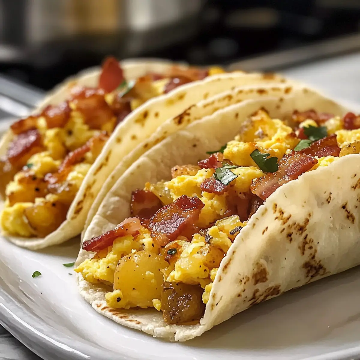 Leckere gebratene Frühstückstacos für jeden Morgen