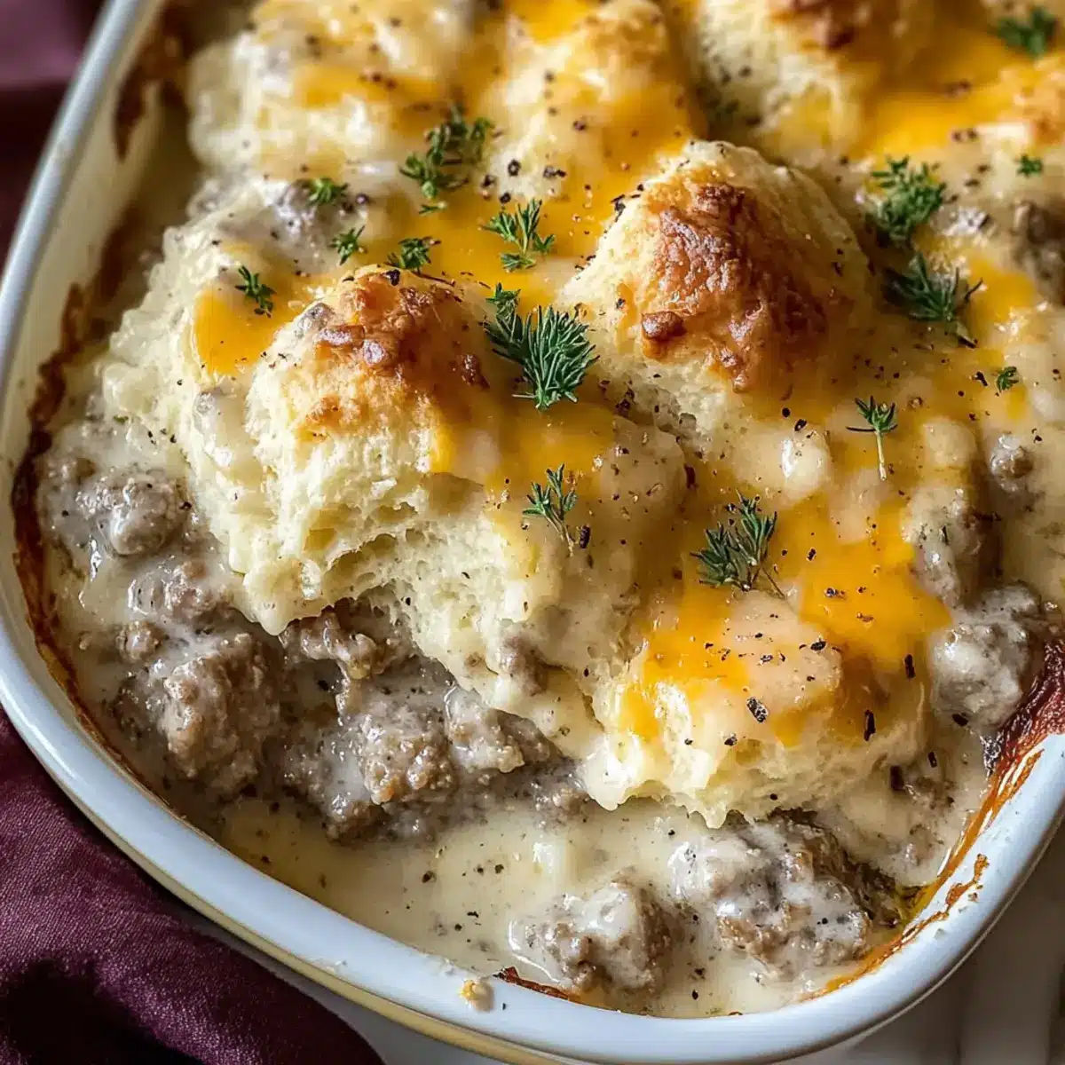 Kekse und Soße Auflauf für ein gemütliches Frühstück