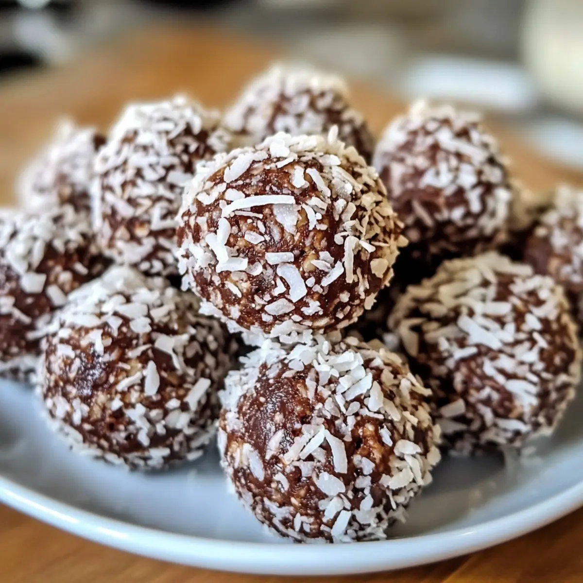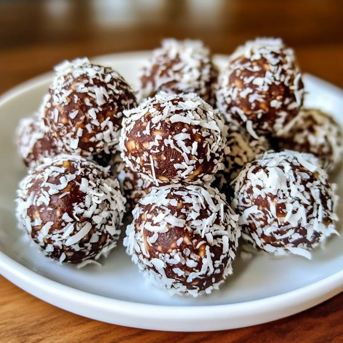 Gesunde Schokoladen-Kokosnuss-Dattel Energiebällchen