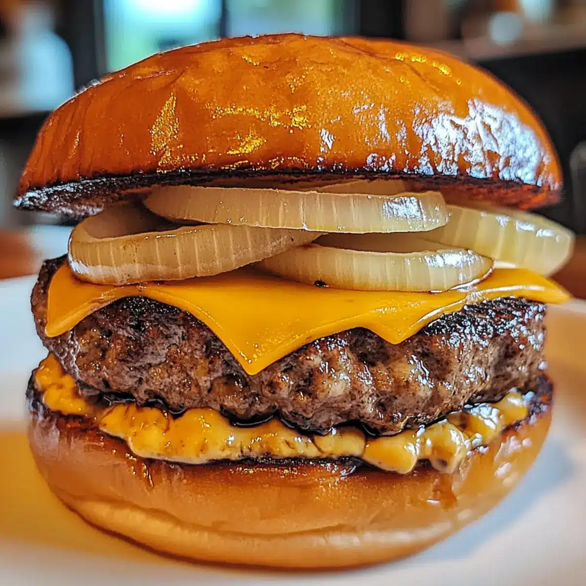 Irisches Pub Burger mit karamellisierten Zwiebeln