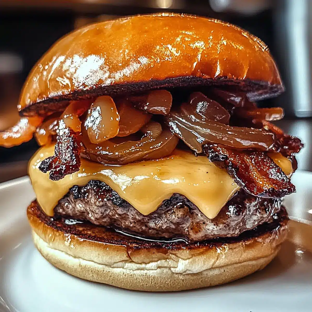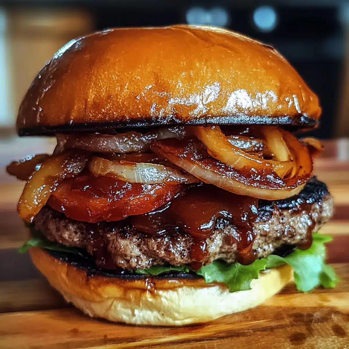 Ahorn Bourbon BBQ Speck Burger mit Zwiebeln