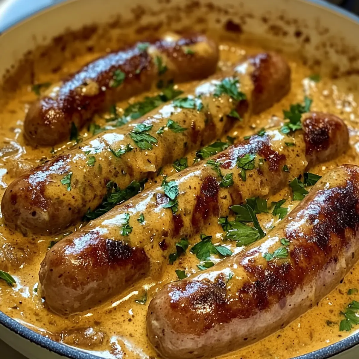 Bratwurst in Zwiebel-Curry-Sahnesauce genießen!