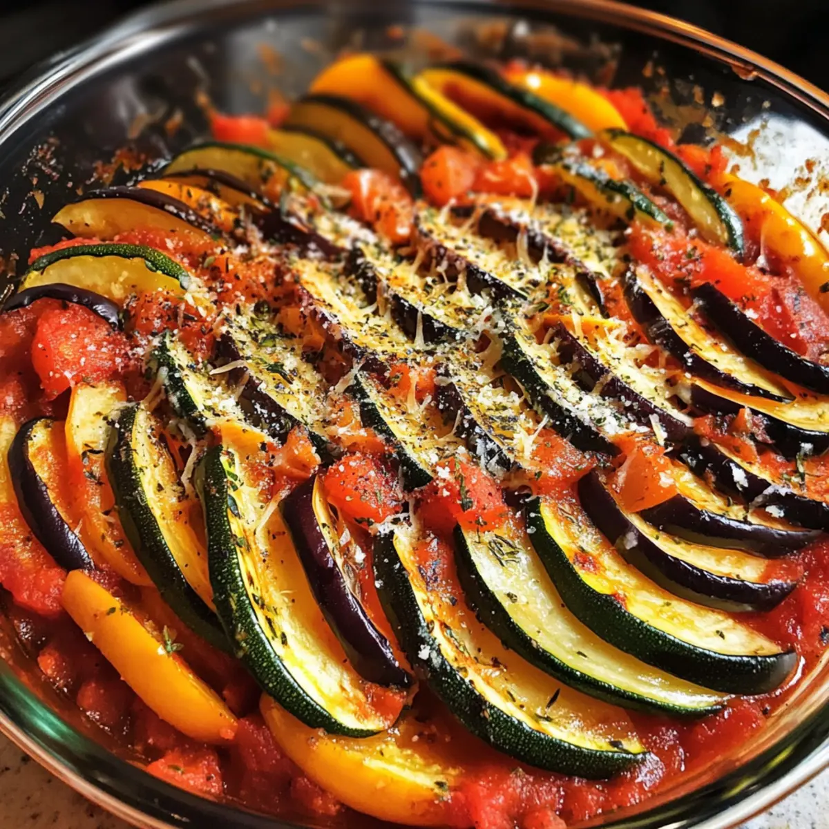 Ofen-geröstetes Ratatouille mit Parmesan-Zauber