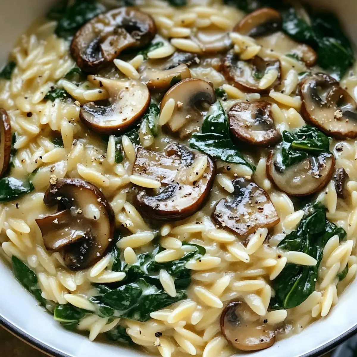 Pilz- und Spinat-Orzo für schnelle Veggie-Abende