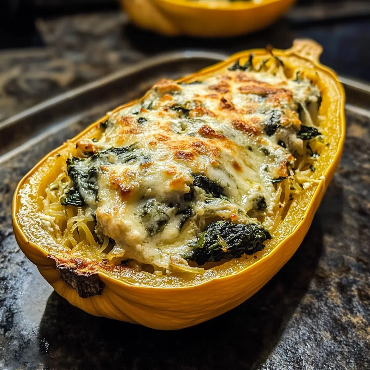 Spinat und Artischocken in gefülltem Spaghetti-Kürbis