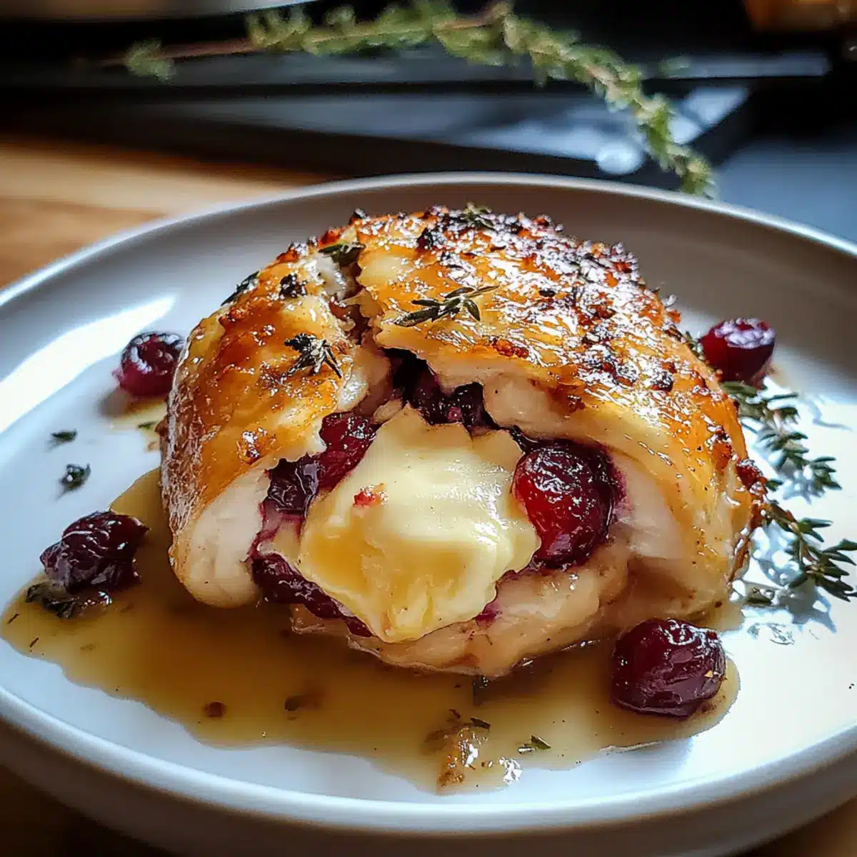 Gefülltes Hähnchen mit Preiselbeeren und Brie