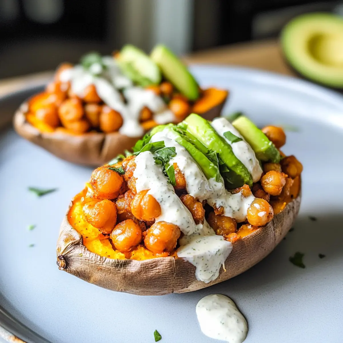 Buffalo Kichererbsen in Süßkartoffel-Boote