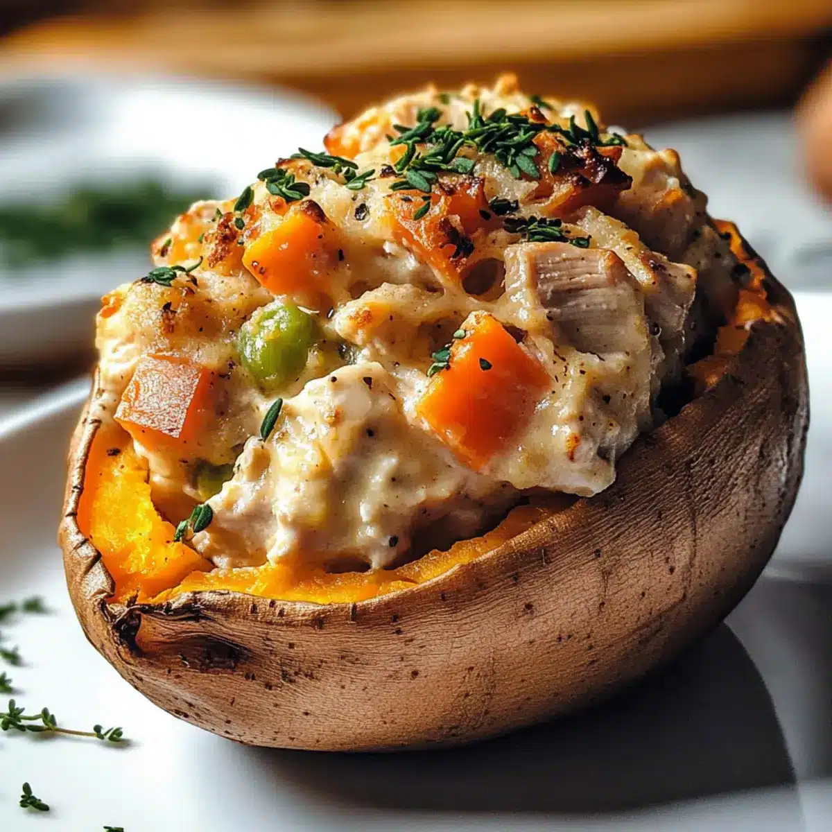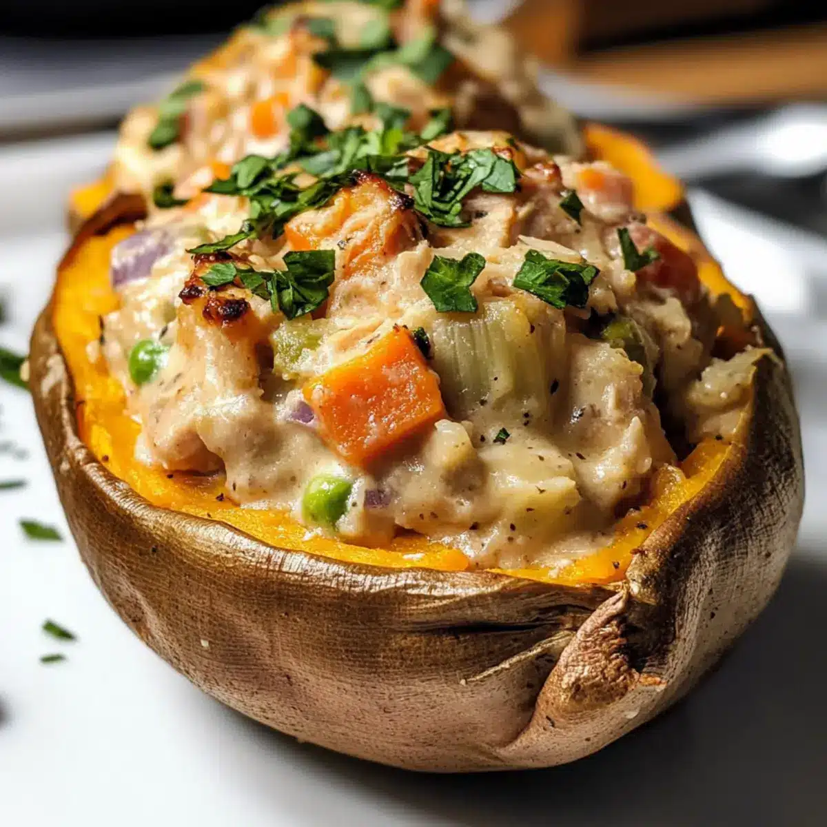 Hähnchen-Pastete in Süßkartoffeln für Zuhause