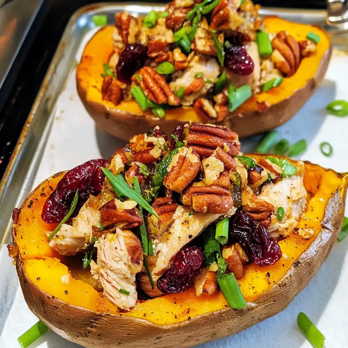 Preiselbeer Pecan Hähnchen mit Süßkartoffeln