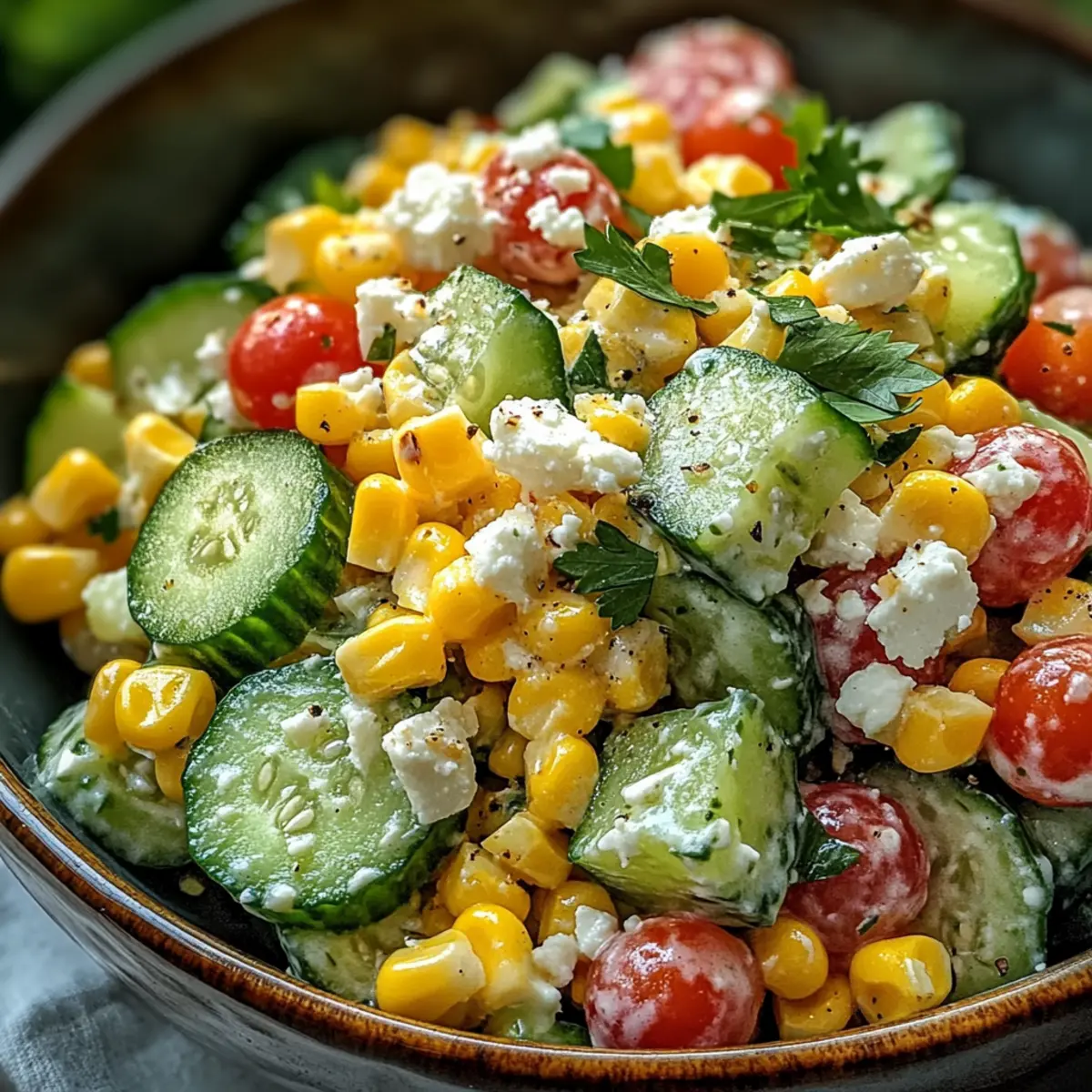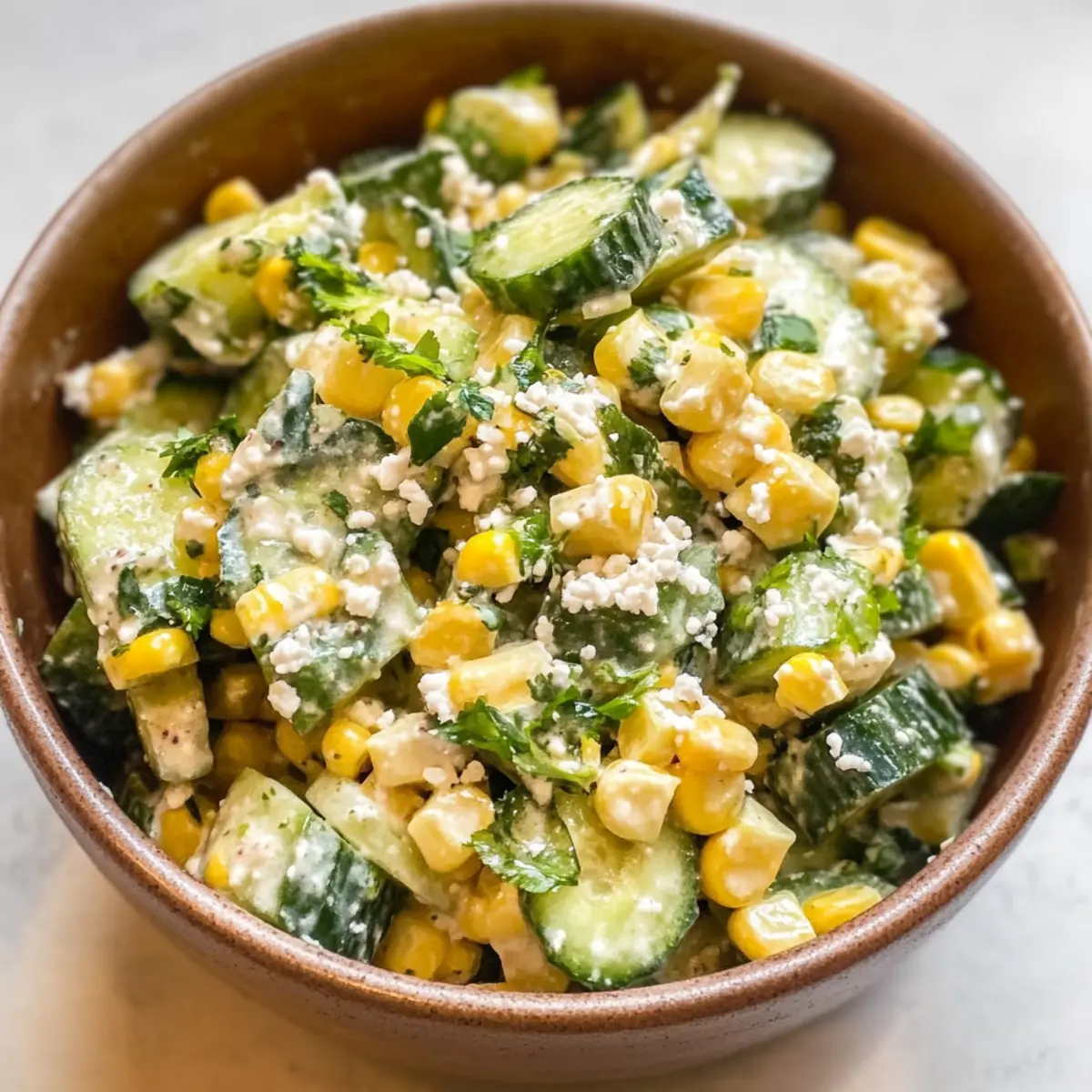 Cremiger Gurkensalat mit süßem Mais