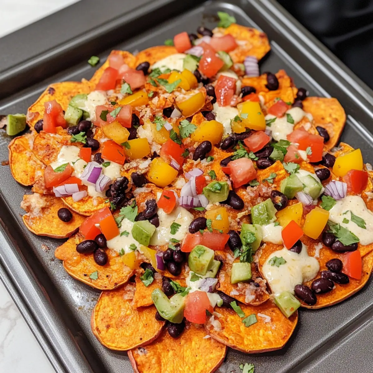 Süßkartoffel-Nachos mit schwarzen Bohnen und Käse