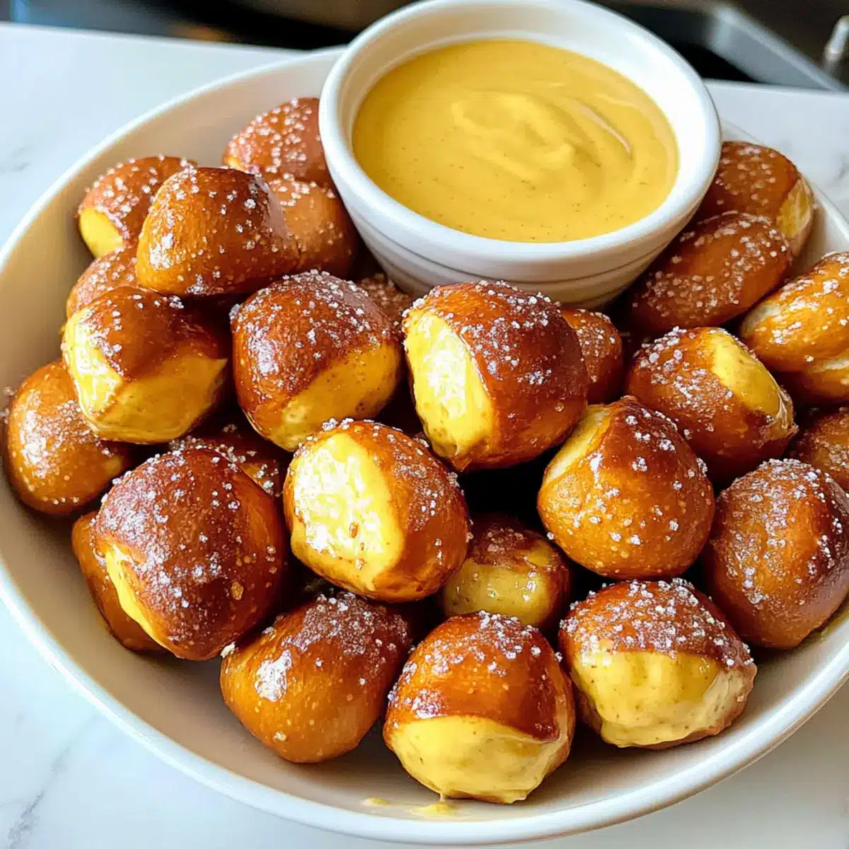 Fluffige Brezelstücke mit Honig-Senf-Dip