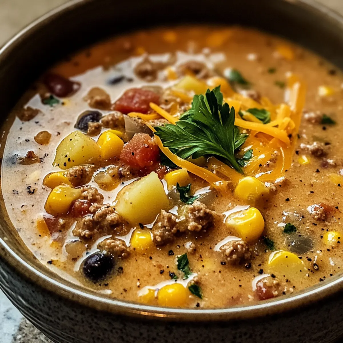 Vegetarisch: Ersetze das Rinderhack durch Linsen oder Kichererbsen für eine proteinreiche, fleischfreie Option. So bleibt die Suppe herzhaft, ohne auf Geschmack zu verzichten.
