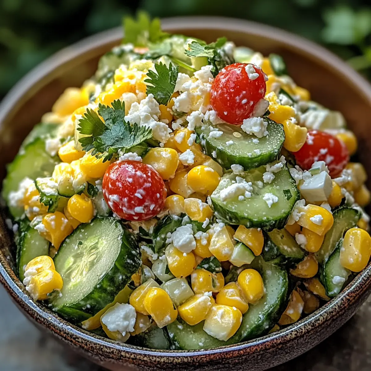 Cremiger Gurkensalat mit süßem Mais