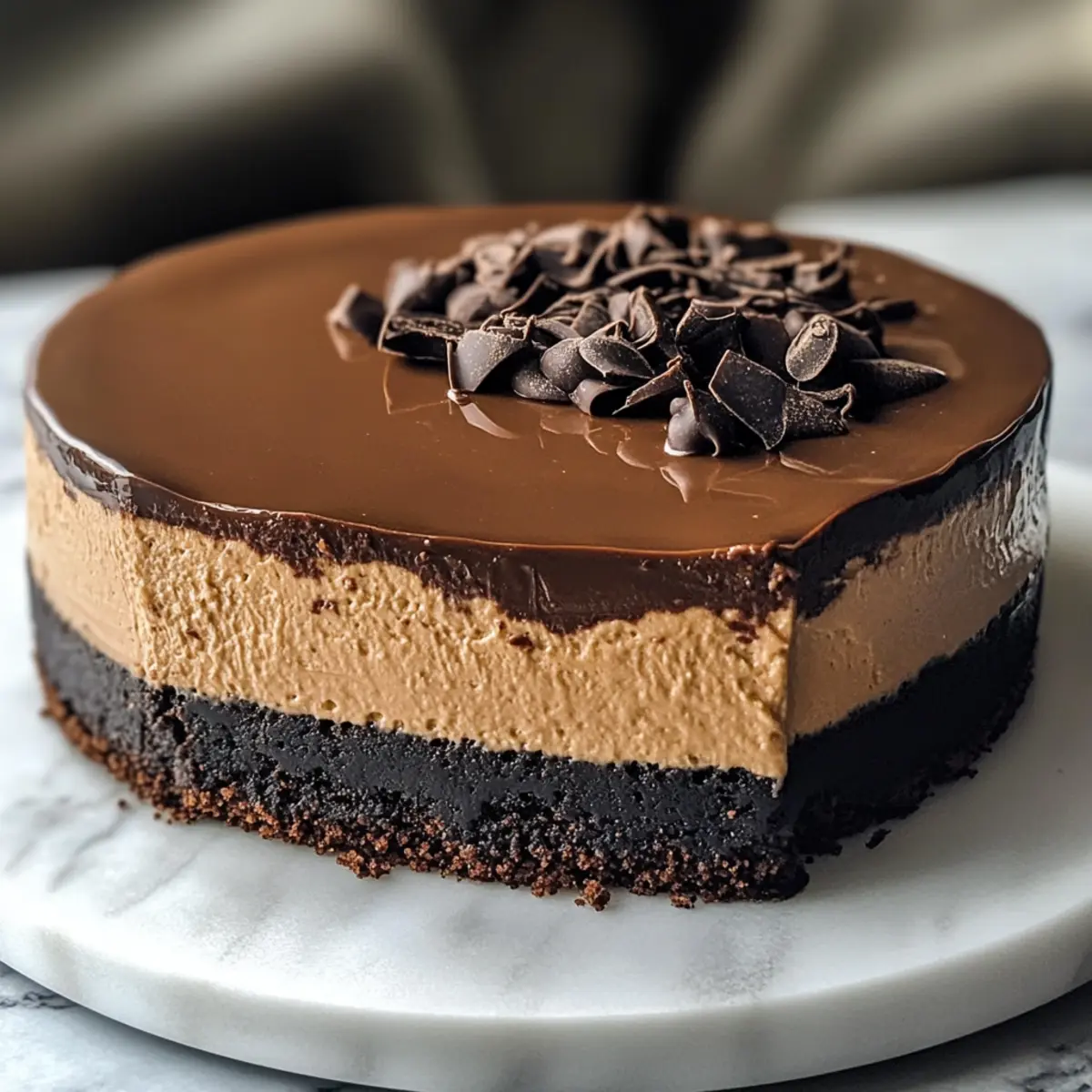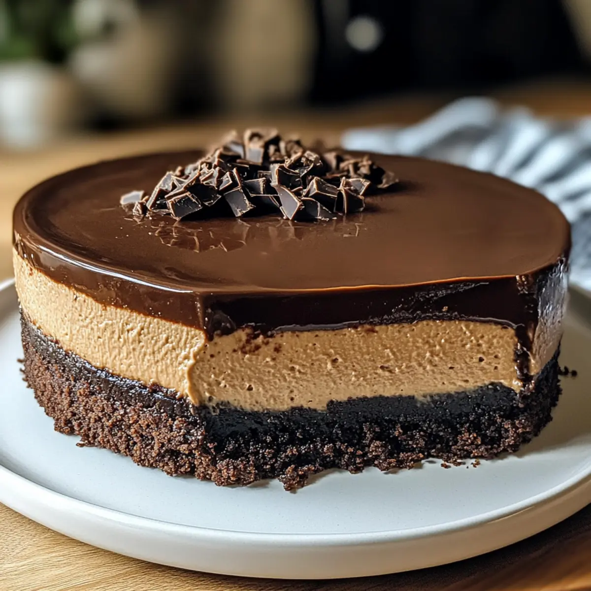 - Kühlen Sie den Cheesecake 4-6 Stunden lang oder über Nacht im Kühlschrank, damit er vollständig fest wird. Vor dem Servieren garnieren Sie ihn mit Schlagsahne, Schokoladenspänen und einigen Kaffeebohnen.
