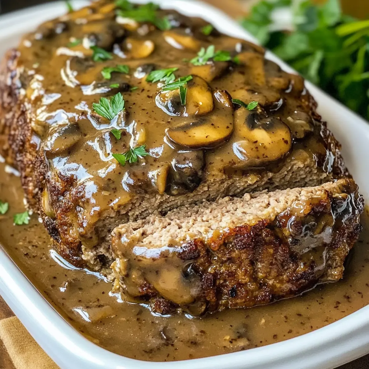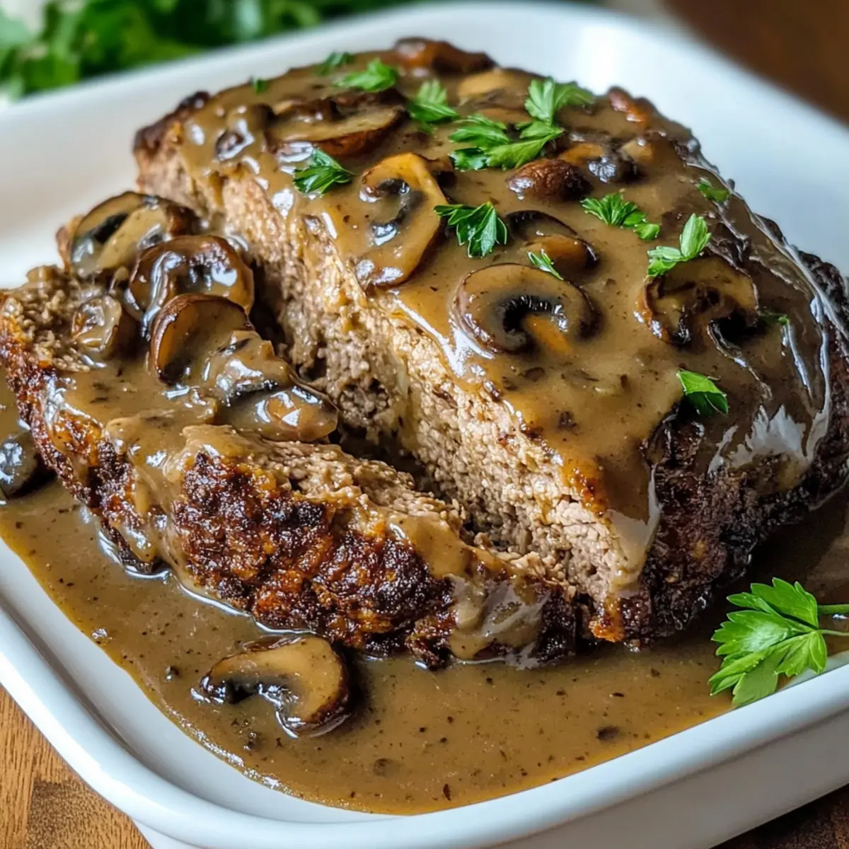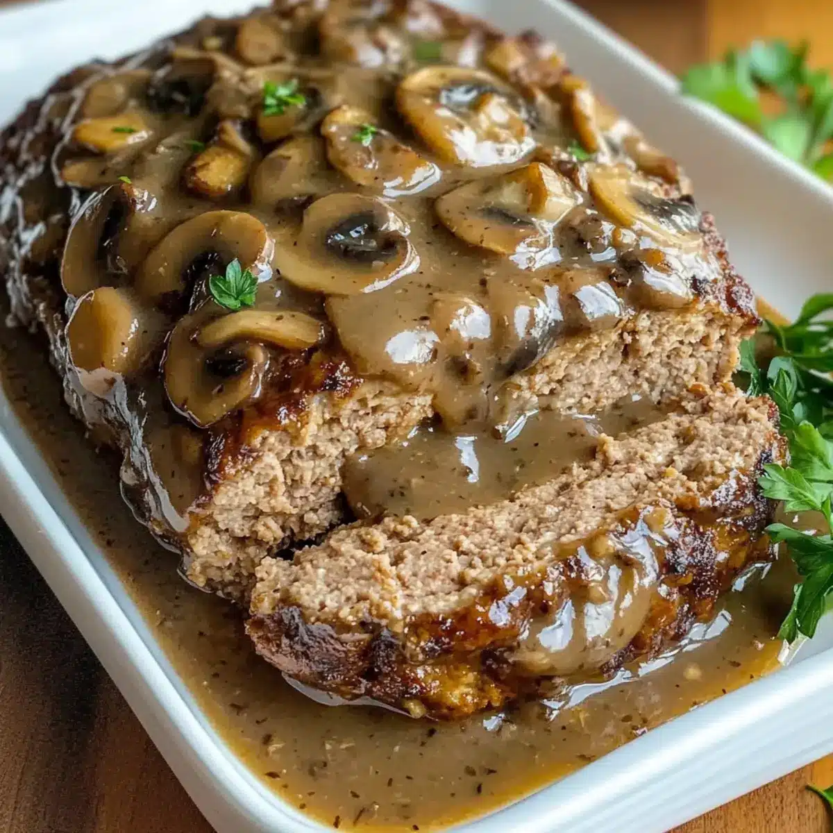 Saftiger Fleischlaib mit cremiger Champignonsoße