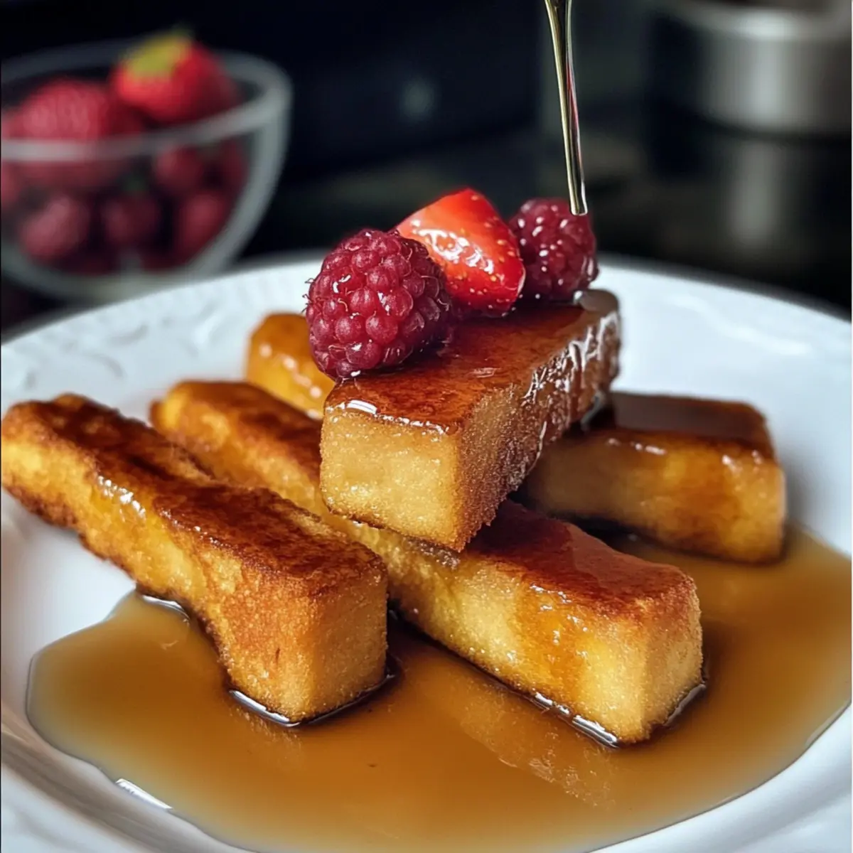 Fruchtige Toppings: Fügen Sie frische Beeren oder eine zuckerfreie Beerensauce hinzu, um eine fruchtige Frische zu genießen. Die Kombination aus süßen Früchten und den warmen Toast-Sticks ist einfach himmlisch.