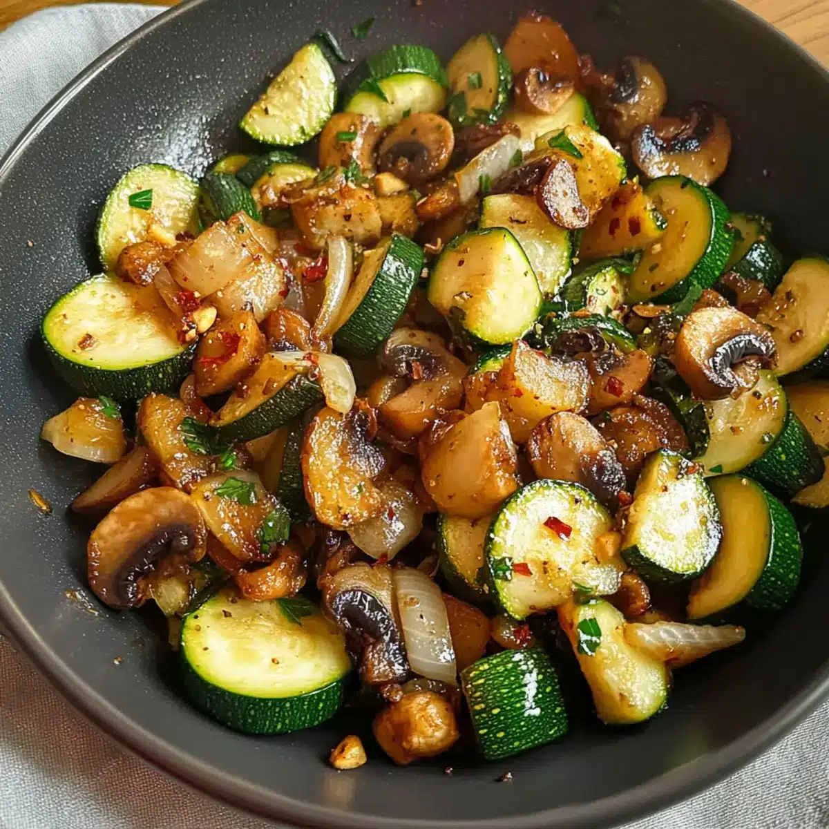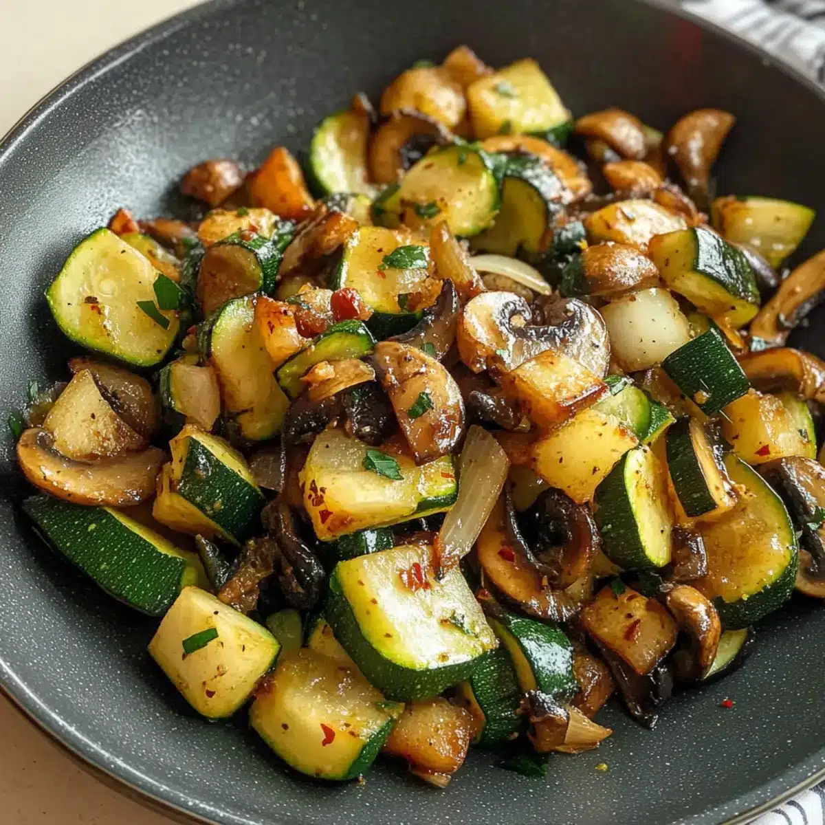 Beim ersten Biss in meine gebratenen Zucchini mit Pilzen fühlt man sich sofort wie im Sommergarten, umgeben von frischen Aromen. In weniger als 15 Minuten zaubere ich diese farbenfrohe Beilage, die nicht nur gesund, sondern auch perfekt für alle ist, die sich nach einer leckeren, kohlenhydratarmen Option sehnen. Diese Kombination aus zarten Champignons, süßen Zwiebeln und dem gewissen Etwas durch Knoblauch macht die gebratenen Zucchini zum Hit auf jedem Esstisch. Egal, ob als Beilage zu gegrilltem Fleisch oder als leichtes vegetarisches Hauptgericht – sie passen einfach zu allem! Neugierig, wie einfach es ist, diesen Geschmack ins eigene Zuhause zu bringen? Lass uns gemeinsam loslegen!