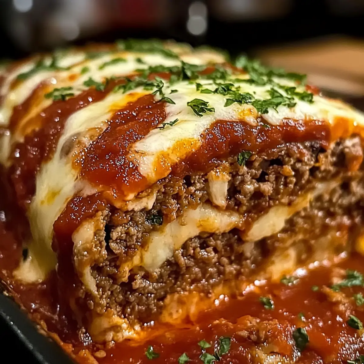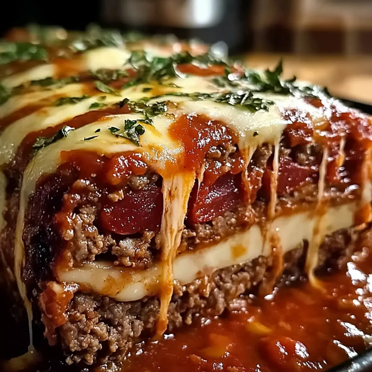 Einzigartige Aromen: Der gefüllte italienische Fleischlaib verbindet herzhaftes Rinder- und Schweinefleisch mit schmelzendem Mozzarella für ein Geschmackserlebnis der besonderen Art.