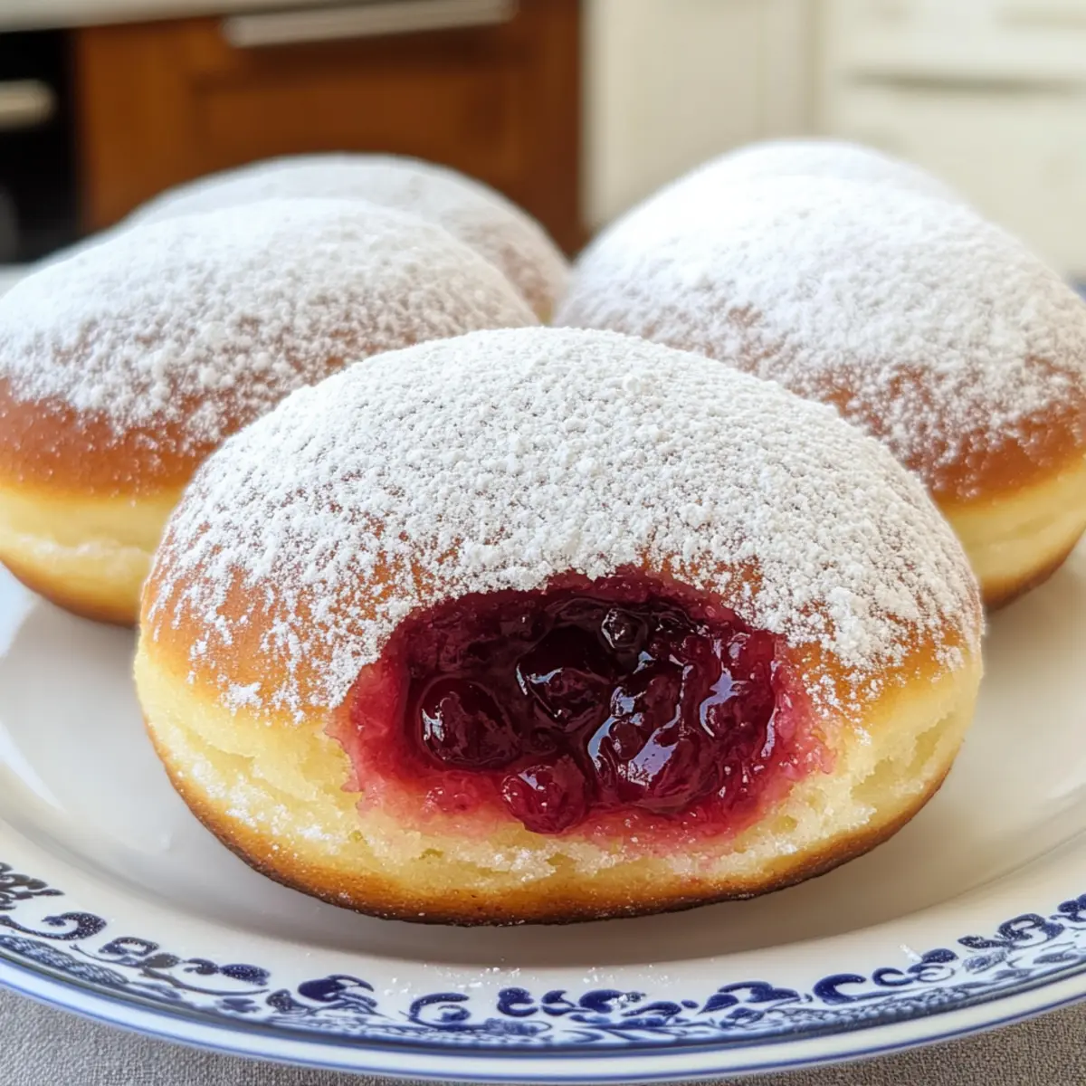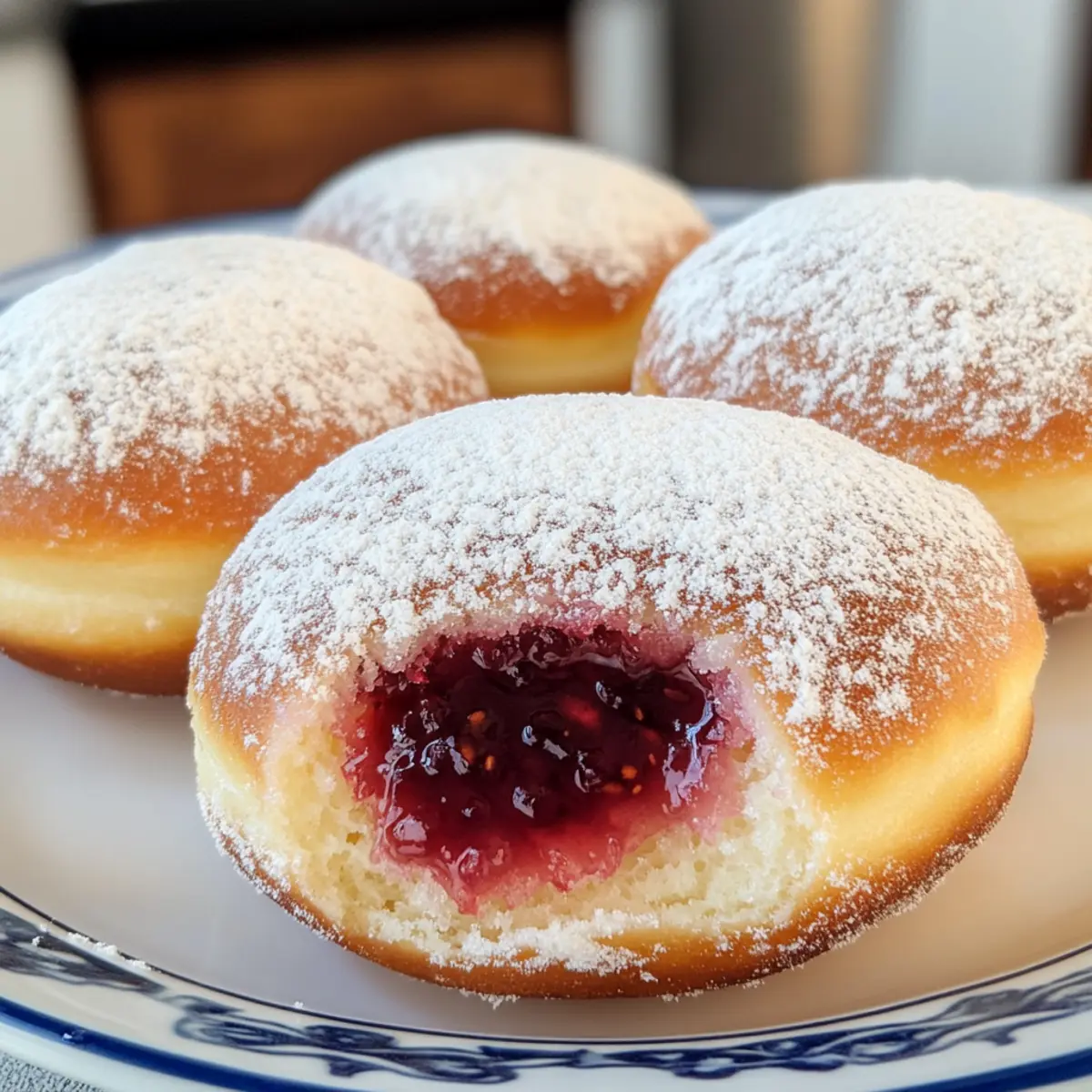 Fluffige Textur: Jeder Biss in diese Krapfen ist ein Erlebnis – außen knusprig, innen luftig und mit einer süßen Marmelade gefüllt, die im Mund zergeht.
