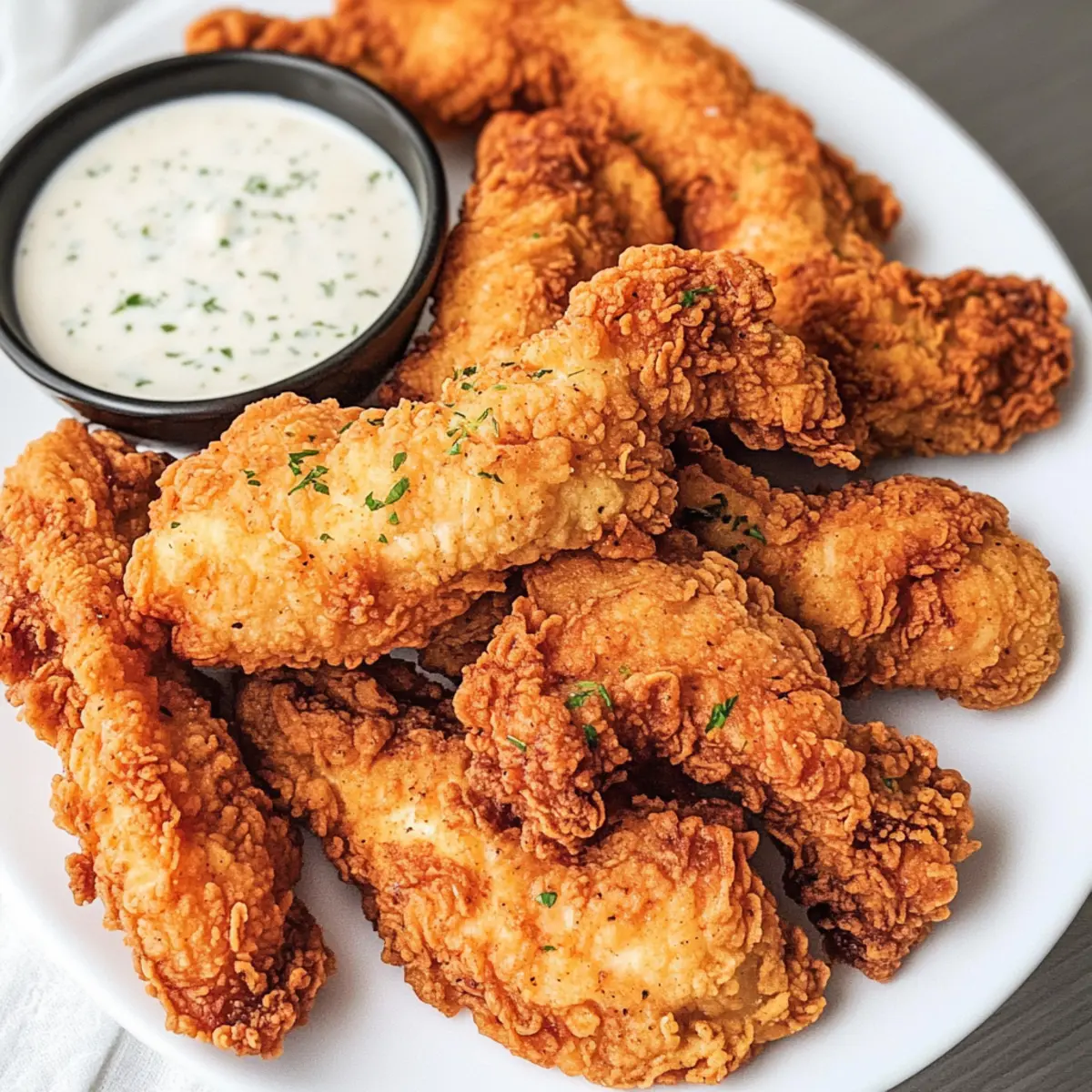 Krosse Hähnchenstreifen mit hausgemachtem Ranch