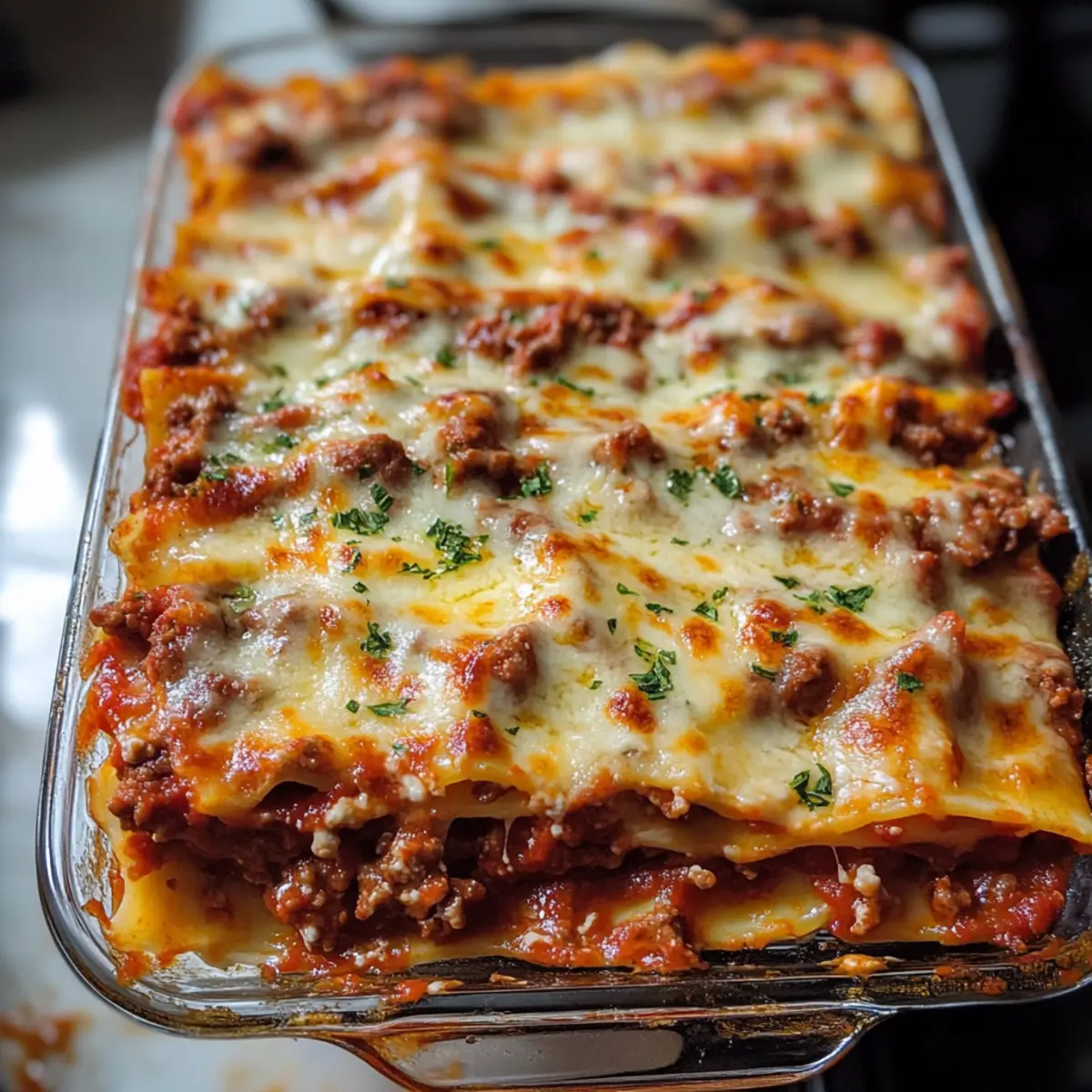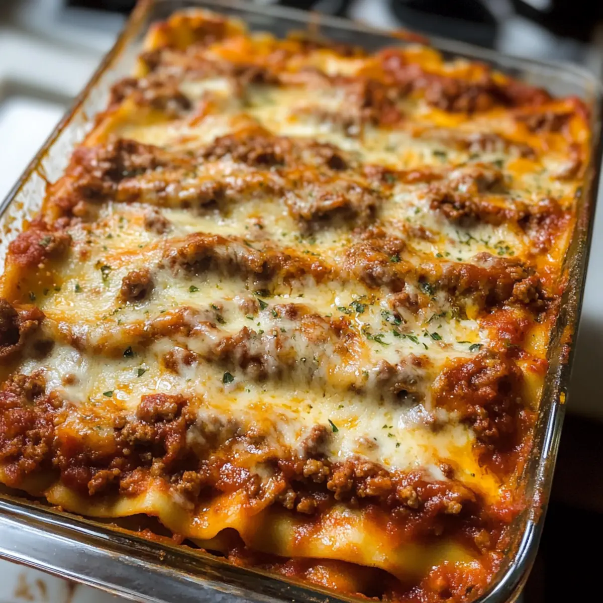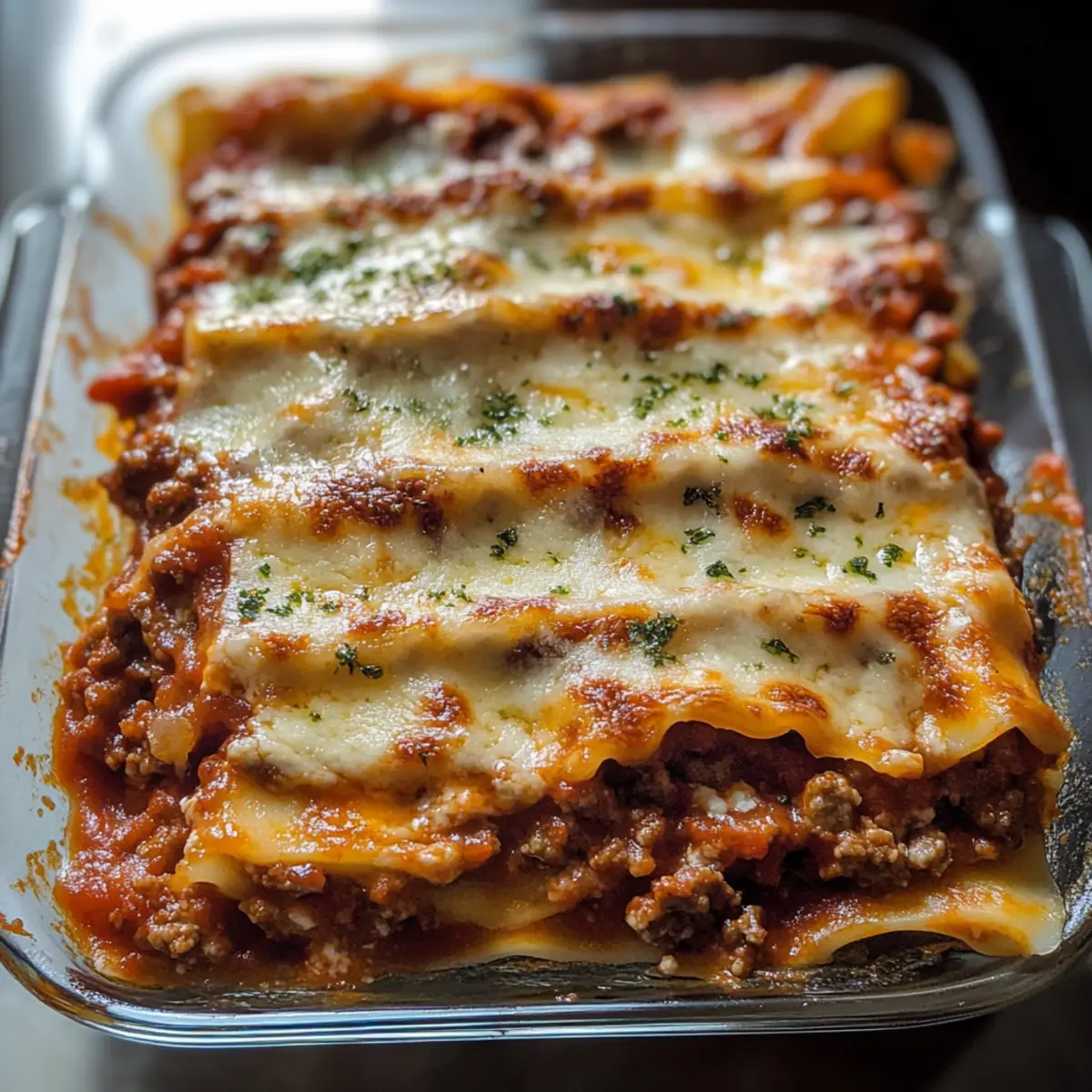 - Würzigere Version: Füge eine Prise rote Chilipulver oder frische gehackte Chilis zur Fleischsauce hinzu, um der Lasagne eine angenehme Schärfe zu verleihen. Perfekt für alle, die es würziger mögen!