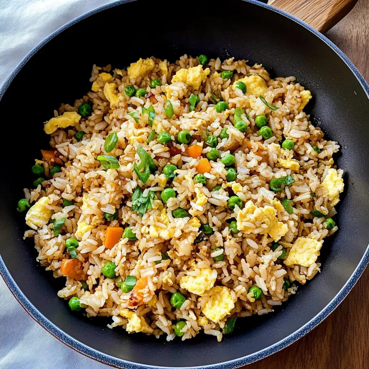 - Eingedampftes Ei: Achte darauf, dass die Eier an einer freien Stelle in der Pfanne gut durchgegart sind, bevor du sie mit dem Reis vermischst – das sorgt für eine tolle Konsistenz.