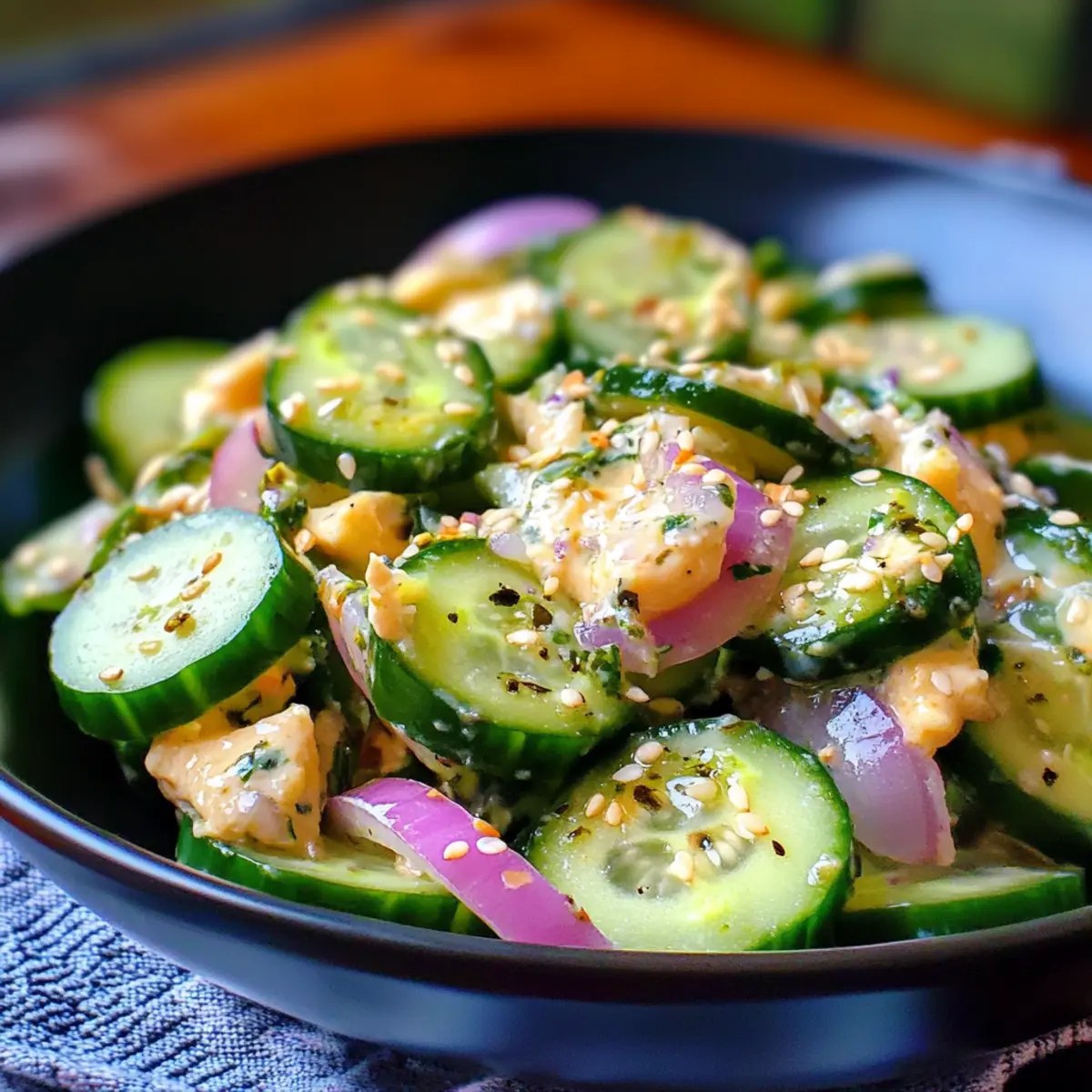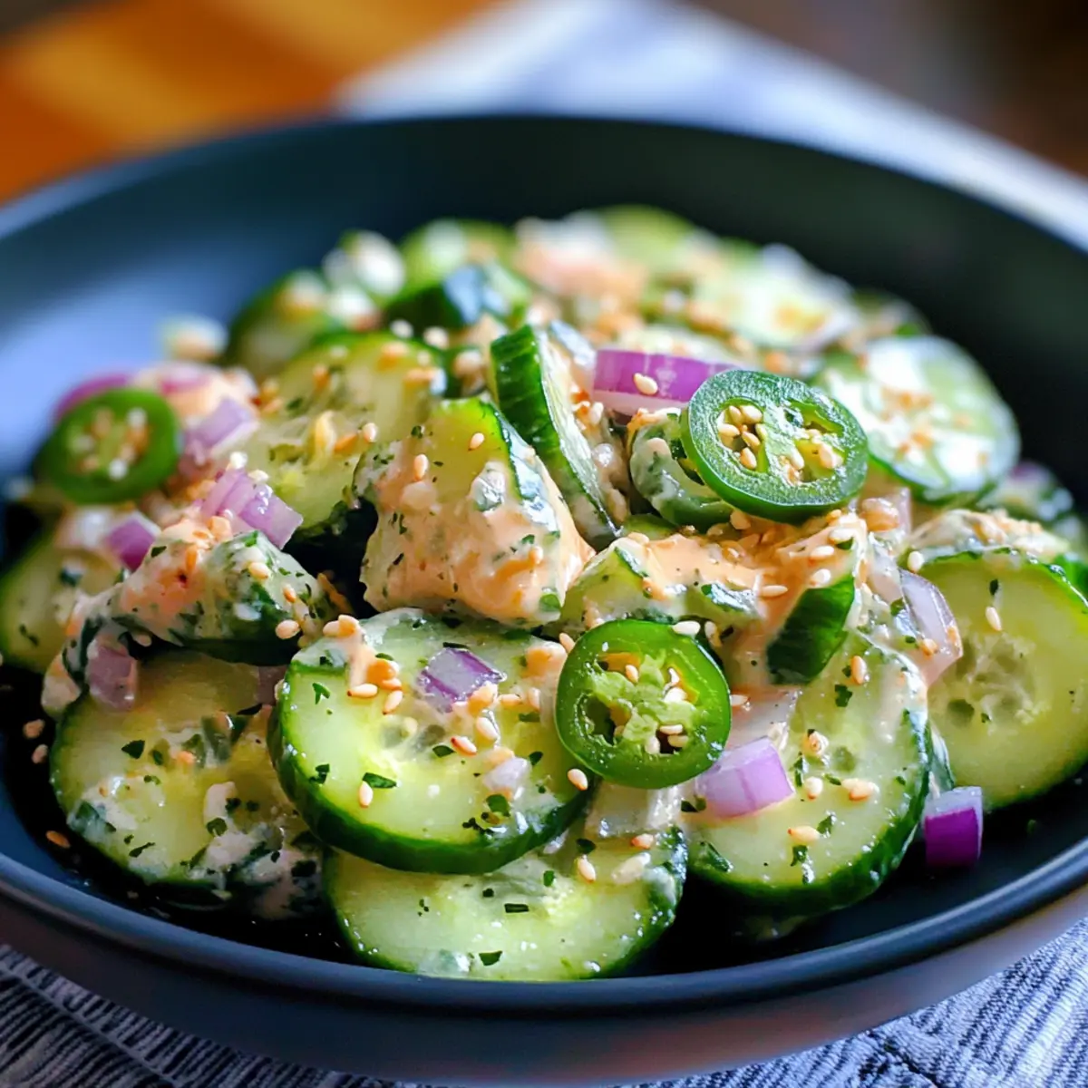 Der Jalapeño-Popper-Gurken-Salat ist eine erfrischende Ergänzung zu jedem Anlass und lässt sich wunderbar mit anderen köstlichen Gerichten kombinieren.