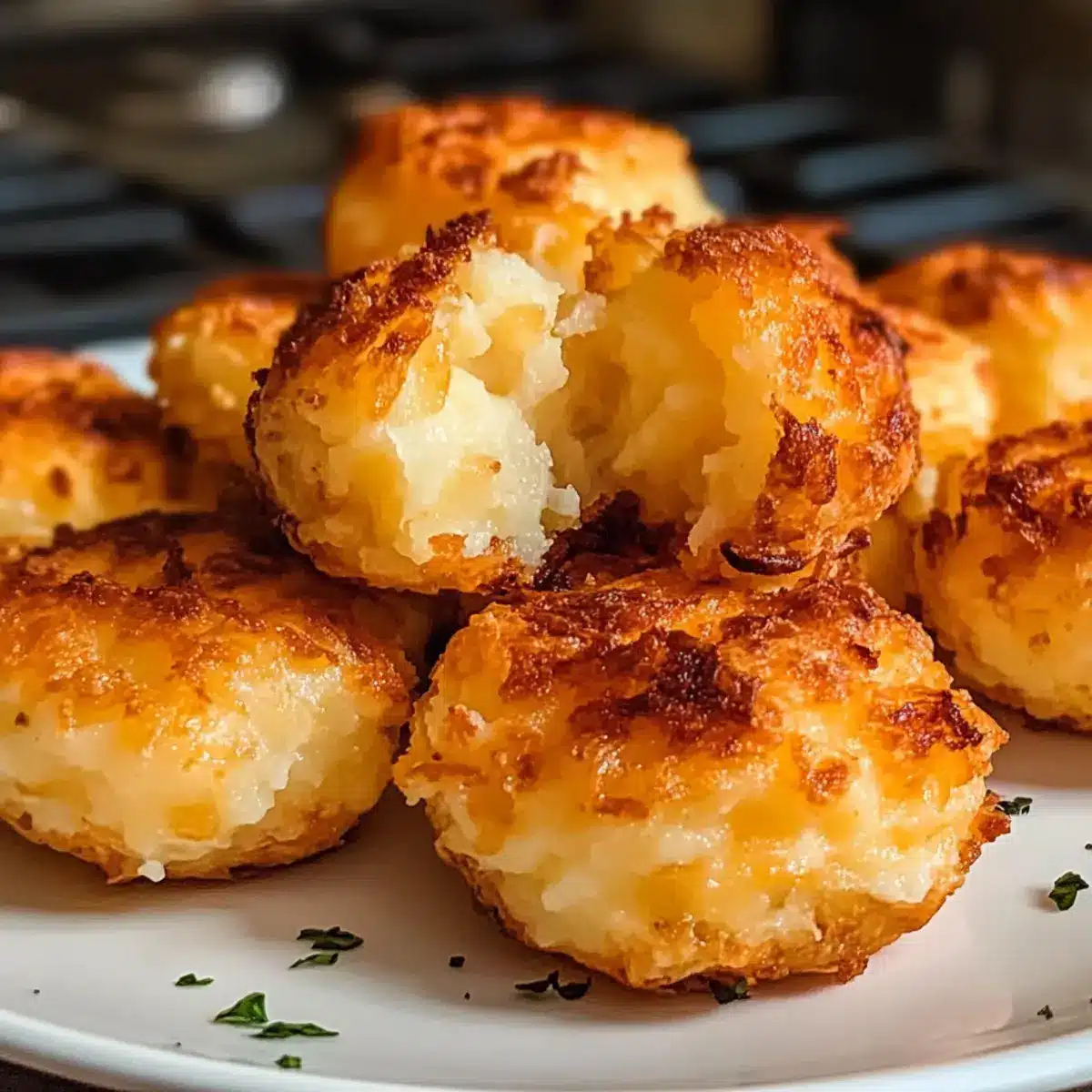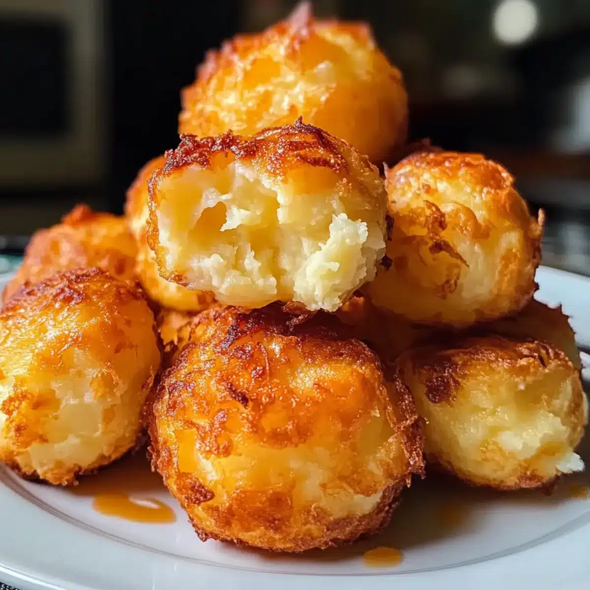 Verwenden Sie gut gekühlten Kartoffelbrei, der nicht zu viel Flüssigkeit enthält. Fügen Sie die Kartoffeln vorsichtig zur Käsemischung hinzu, um sie nicht zu stark zu zerdrücken. Dadurch bleibt die fluffige Textur erhalten, was zu einem perfekten Snack führt.