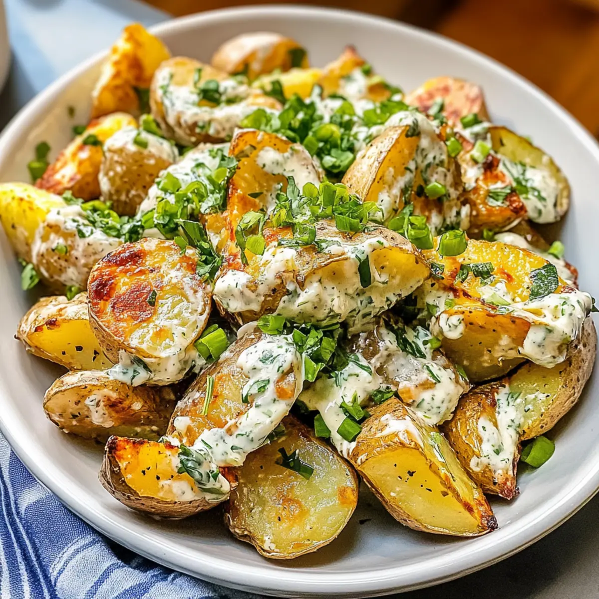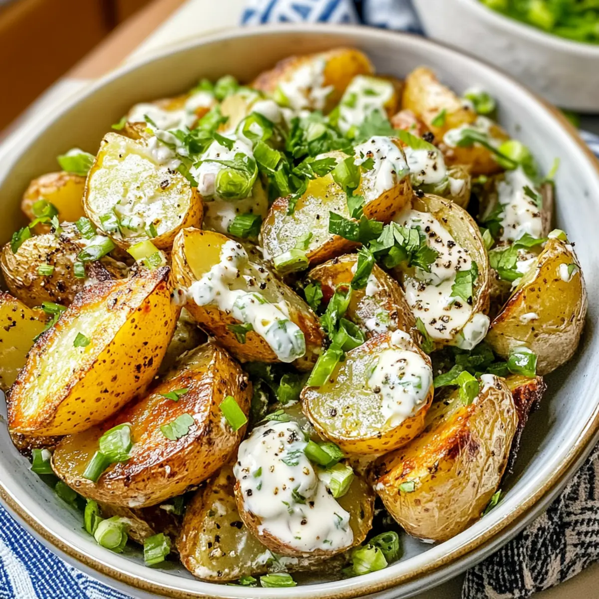 Köstlicher Kartoffelsalat mit knusprigen Kartoffeln