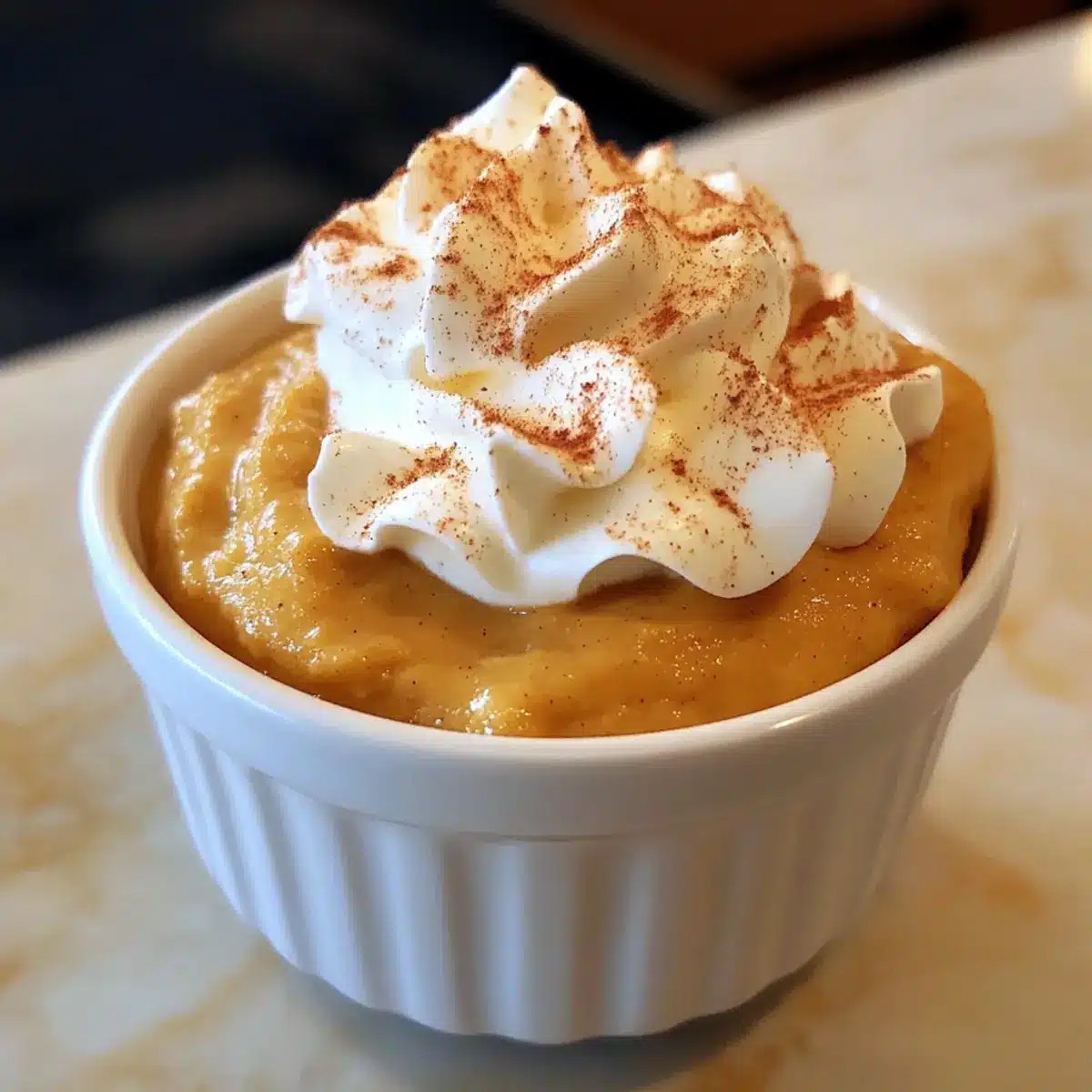 Wiederaufwärmen: Für besten Genuss, erwärme den gefrorenen Kürbispudding sanft in der Mikrowelle oder lasse ihn über Nacht im Kühlschrank auftauen.