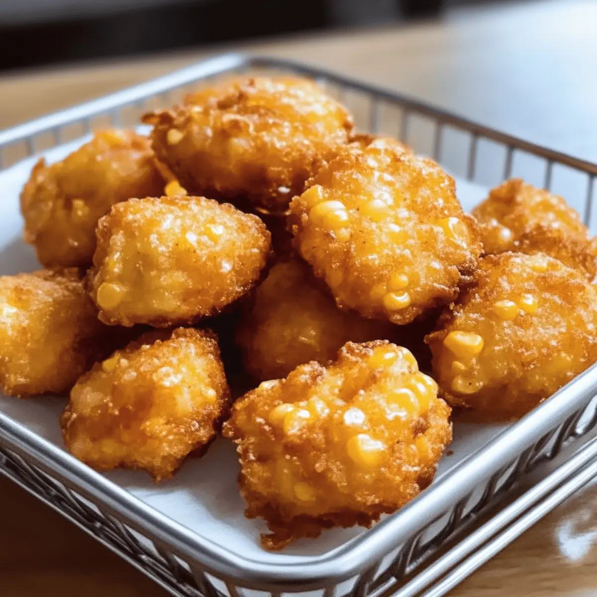 Die Maisnuggets sind perfekt für alle, die Zeit in der Küche sparen möchten! Du kannst den Teig bis zu 24 Stunden im Voraus vorbereiten und im Kühlschrank aufbewahren, damit sich die Aromen entfalten können und die Textur sich verbessert. Bedecke die Schüssel mit Frischhaltefolie, um ein Antrocknen zu vermeiden. Wenn du bereit bist zu frittieren, erhitze das Öl und forme aus dem kalten Teig kleine Portionen. Frittiere die Nuggets in kleinen Mengen für etwa 3–4 Minuten, bis sie goldbraun sind. Achte darauf, dass das Öl heiß genug ist, um eine knusprige Textur zu gewährleisten. Mit diesen Vorbereitungen kannst du die köstlichen Maisnuggets ganz ohne Stress genießen!