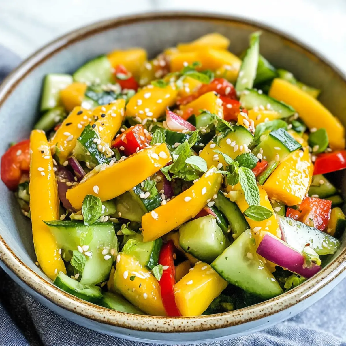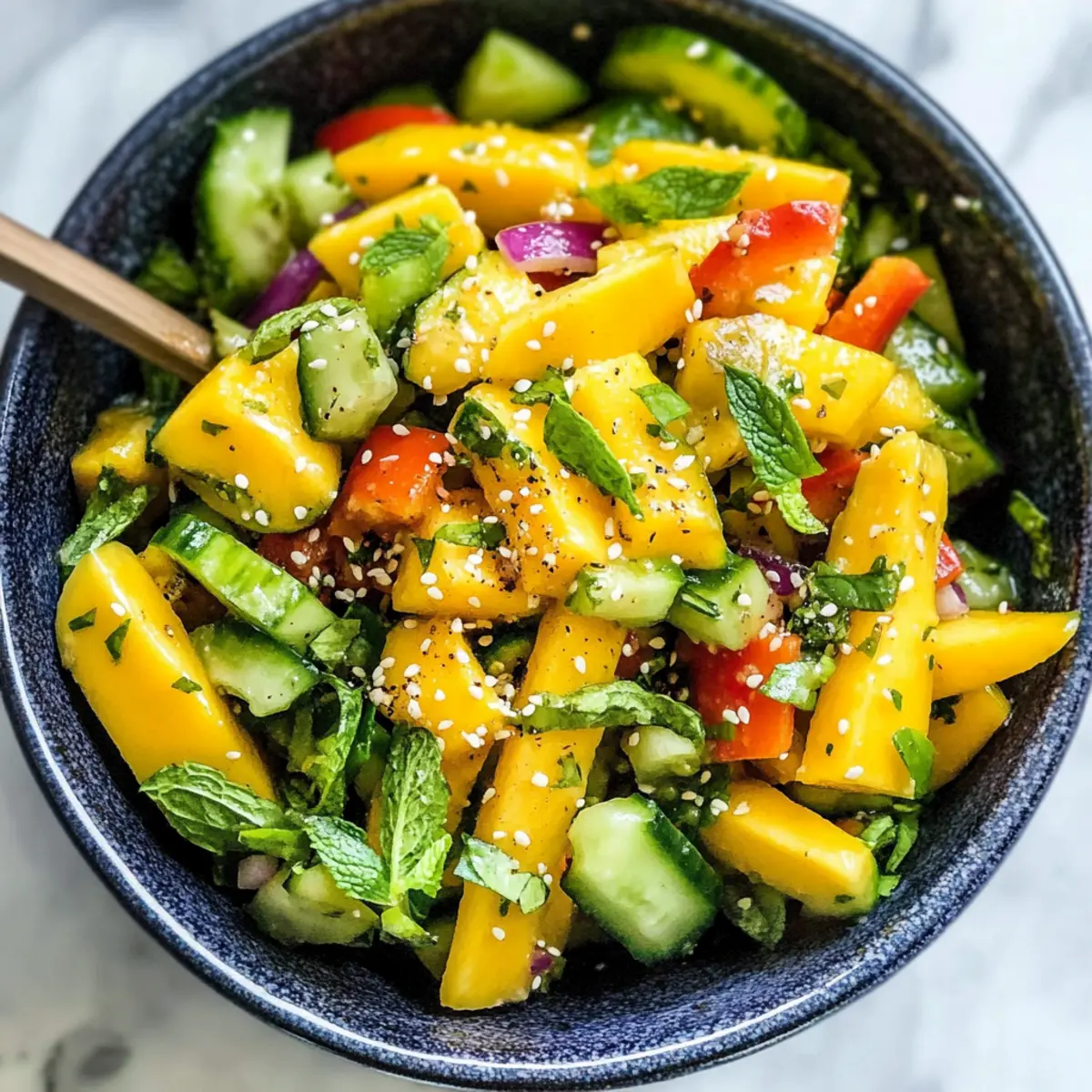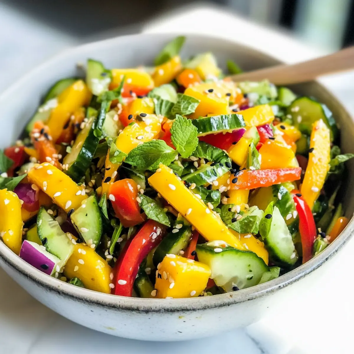 • Frische Zutaten: Verwende nur frisches Gemüse und reife Mangos für den besten Geschmack. So entsteht ein lebendiger, geschmackvoller Salat.