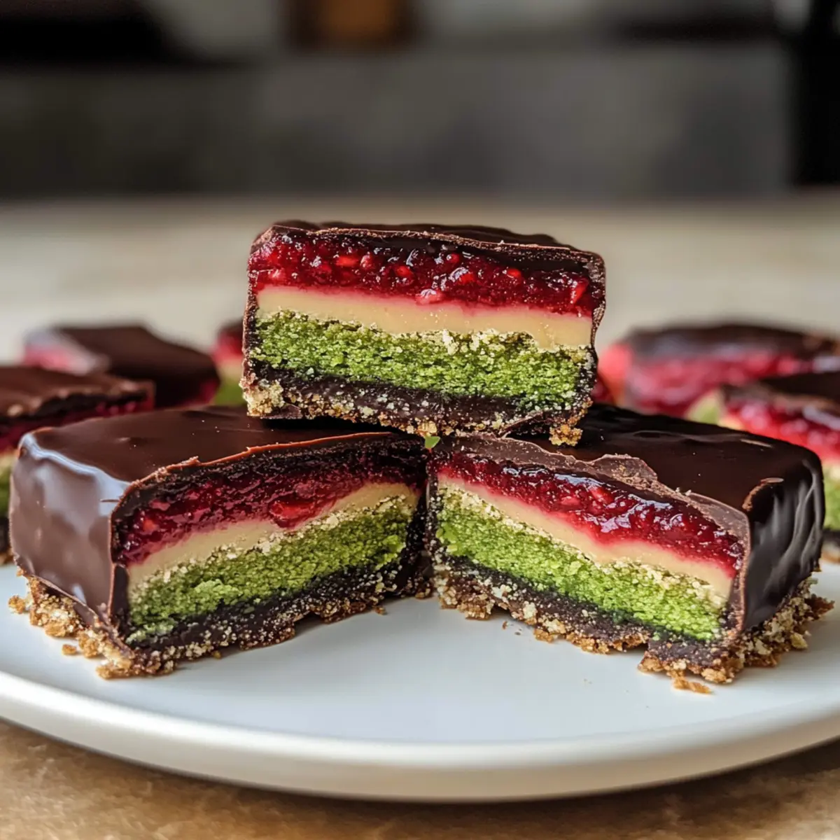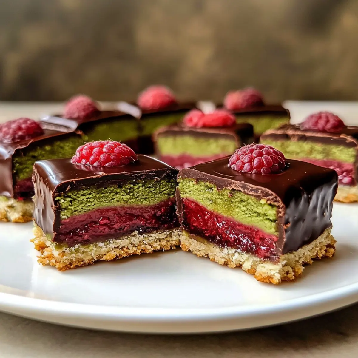 Visueller Genuss: Die lebendige grüne Farbe und der glänzende Schokoladenüberzug machen diese Riegel zu einem echten Hingucker für jede Gelegenheit!