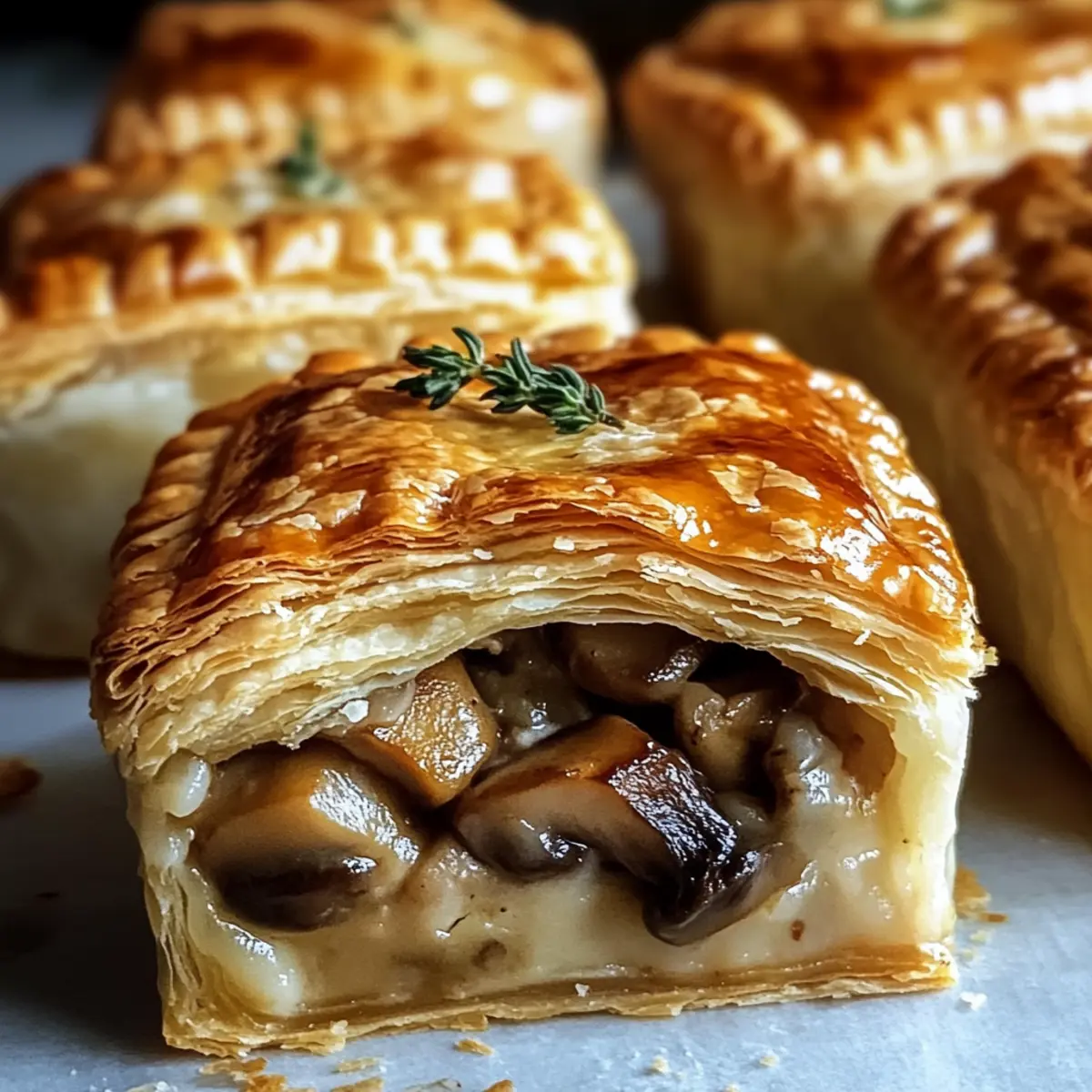 • Kruste richtig versiegeln: Achten Sie darauf, die Ränder des Blätterteigs gut zu versiegeln, damit die köstliche Pilz & Gruyère-Füllung beim Backen nicht herausläuft.