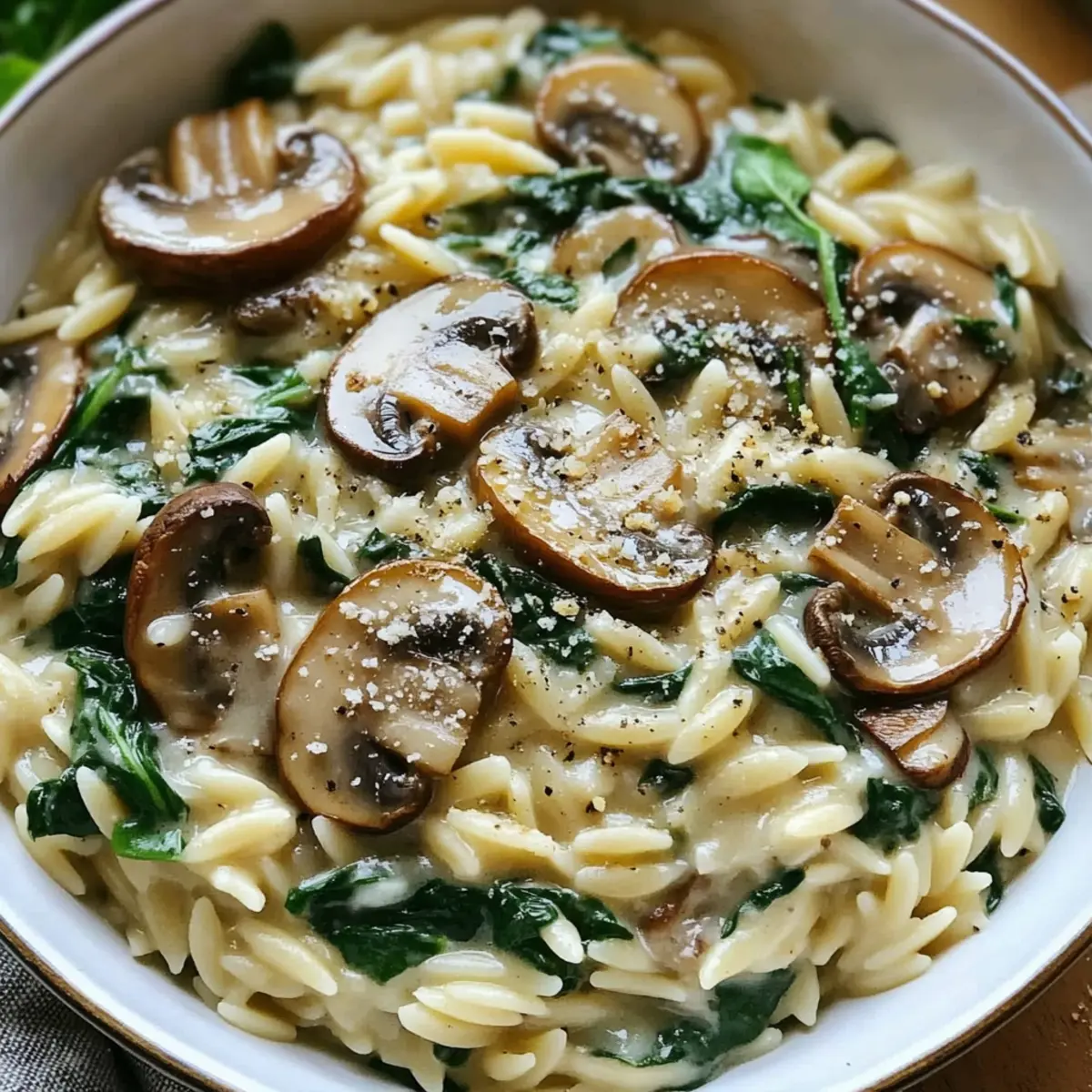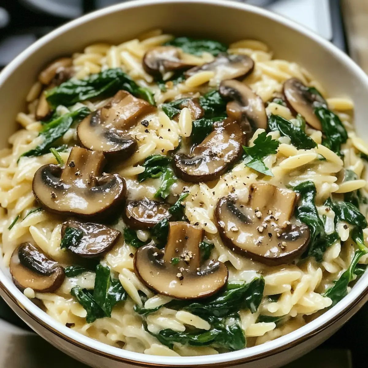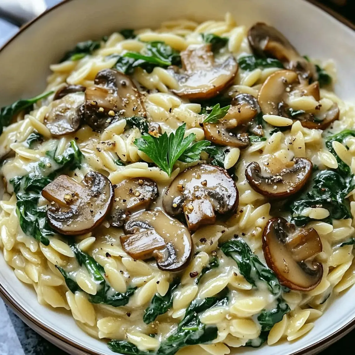 Pilz- und Spinat-Orzo für schnelle Veggie-Abende