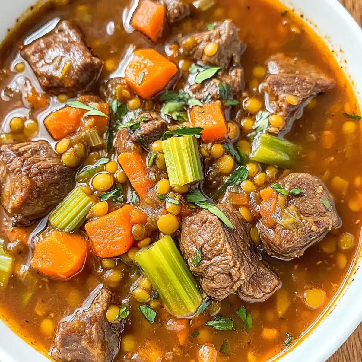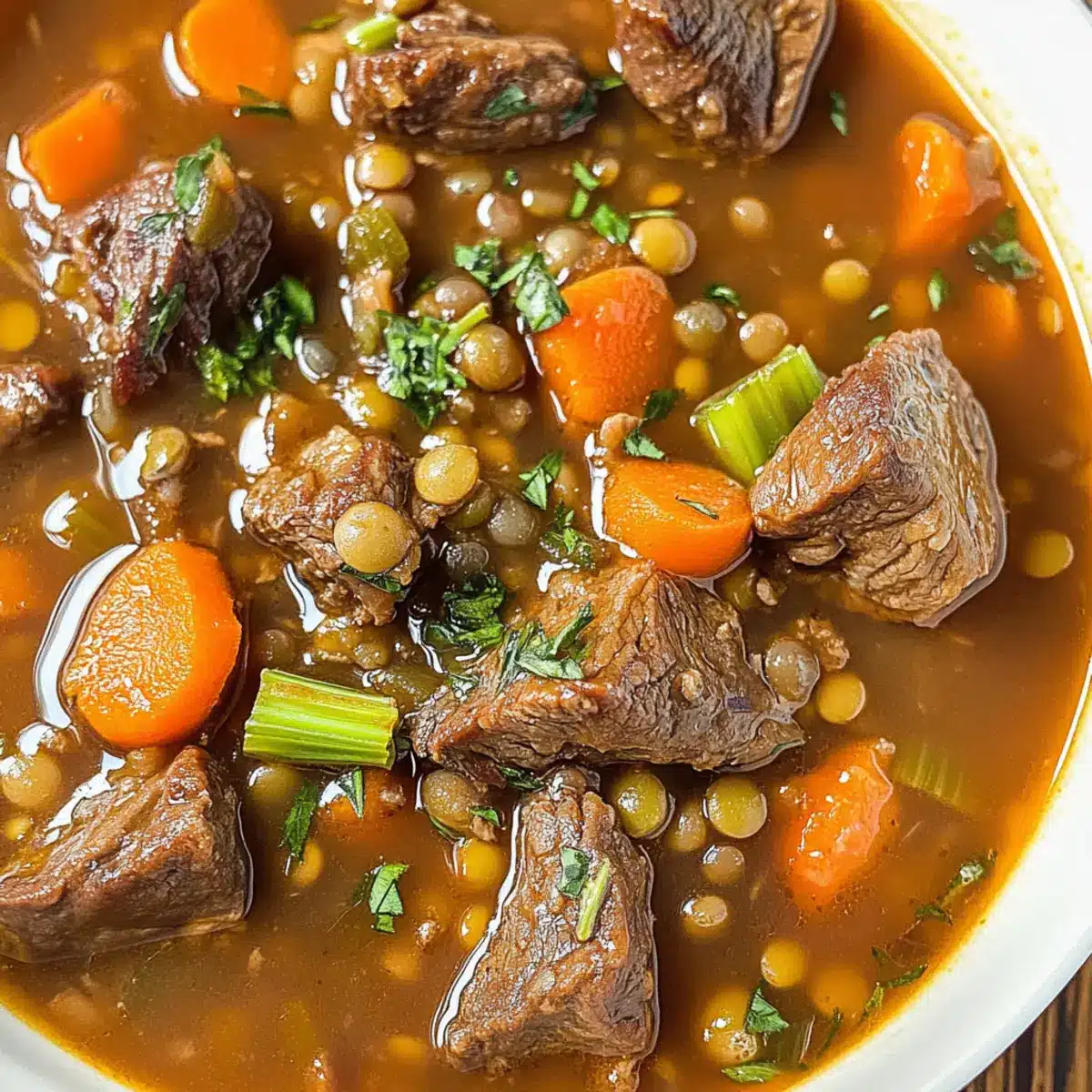 • Entdecke die köstlichen Zutaten für einen herzhaften Rindfleisch Linsen Eintopf!